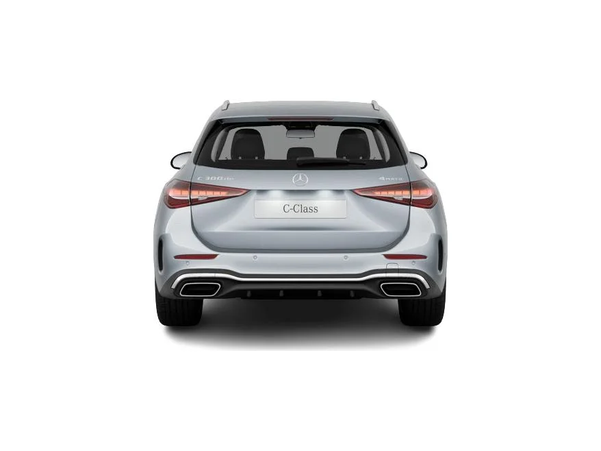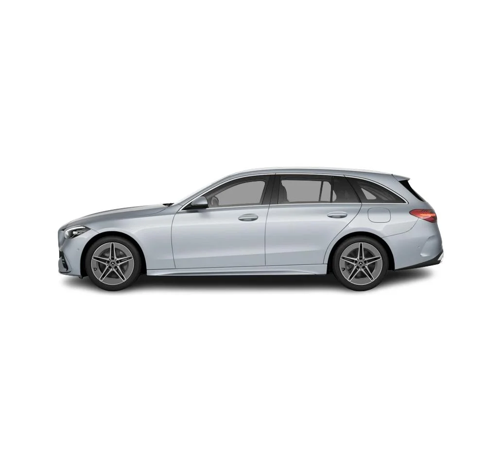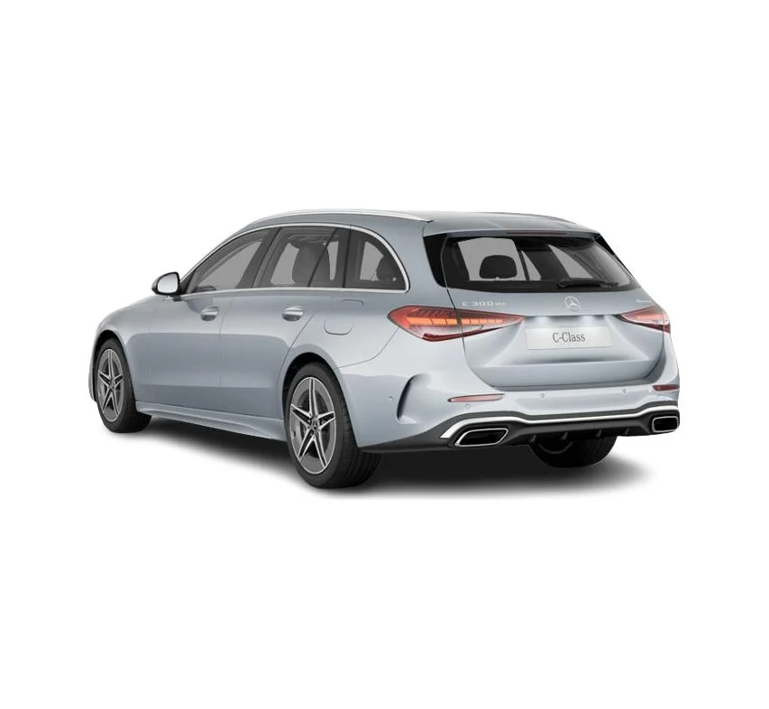 Mercedes-Benz C 300 de 4MATIC z EQ Kombi łączy nowoczesną linię C-Klasy z subtelnymi akcentami podkreślającymi obecność napędu hybrydowego. Nadwozie prezentuje się dynamicznie i dojrzale, a proporcje typowe dla kombi dodają mu praktyczności bez utraty premium wyglądu. Srebrny lakier high-tech oraz zewnętrzna stylizacja AMG nadają autu bardziej zdecydowanego, sportowego charakteru, który świetnie współgra z technologicznym wnętrzem.