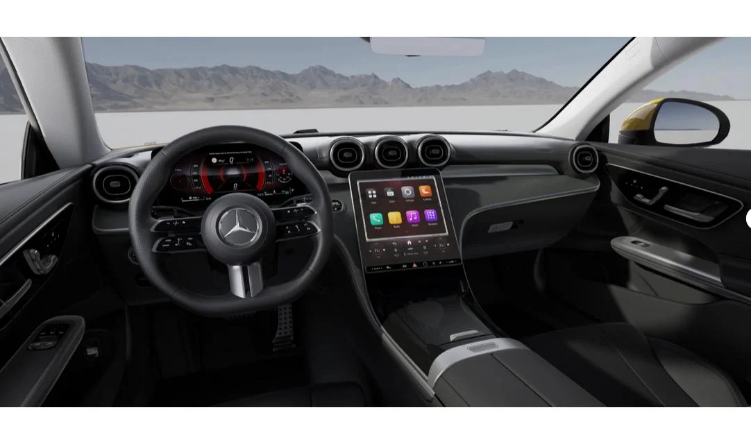 Kabina została zaprojektowana w nowoczesnym, minimalistycznym stylu, typowym dla najnowszych modeli Mercedesa. Duże ekrany, cyfrowy kokpit i system MBUX tworzą intuicyjne środowisko obsługi. Wysoka jakość materiałów oraz staranne wykończenie podkreślają luksusowy charakter wnętrza, a ergonomia sprzyja codziennej jeździe.