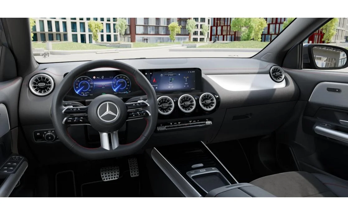 Kabina oferuje nowoczesne rozwiązania cyfrowe oraz intuicyjny system multimedialny MBUX. Wnętrze zostało zaprojektowane w sposób ergonomiczny, z naciskiem na wygodę kierowcy i pasażerów. Jakość użytych materiałów stoi na wysokim poziomie i odpowiada standardom marki Mercedes-Benz. To przestrzeń, w której technologia i komfort dobrze się uzupełniają.