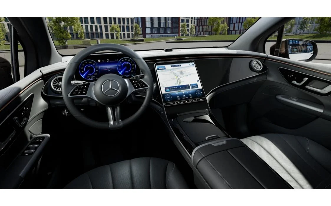 Wnętrze EQE 350+ SUV oferuje dużo miejsca zarówno z przodu, jak i na tylnej kanapie. Przestronny bagażnik sprawia, że auto bez problemu sprawdzi się jako samochód rodzinny lub biznesowy. Ergonomia kabiny została zaprojektowana z myślą o codziennym użytkowaniu. To SUV, który łączy luksus z realną praktycznością.