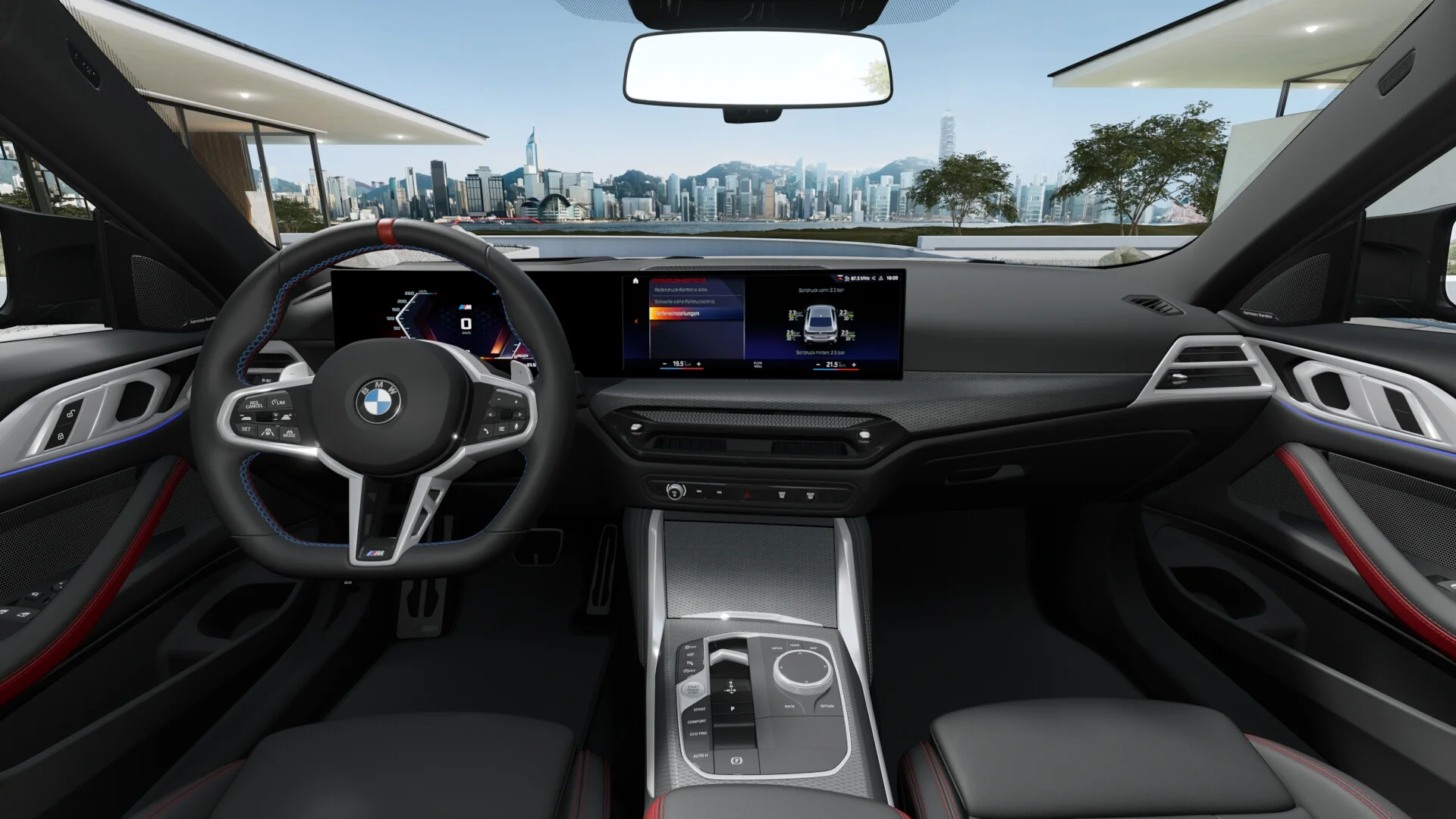 We wnętrzu znajdziemy sportowe fotele z elektryczną regulacją i pamięcią ustawień kierowcy, które zapewniają idealne podparcie. Podsufitka M Anthracite, pasy z przeszyciami w barwach M oraz oświetlenie ambientowe budują wyjątkową atmosferę. Automatyczna klimatyzacja i bogate wyposażenie komfortowe podnoszą przyjemność codziennego użytkowania. Całość utrzymana jest w duchu premium, gdzie sport i wygoda idą w parze.
