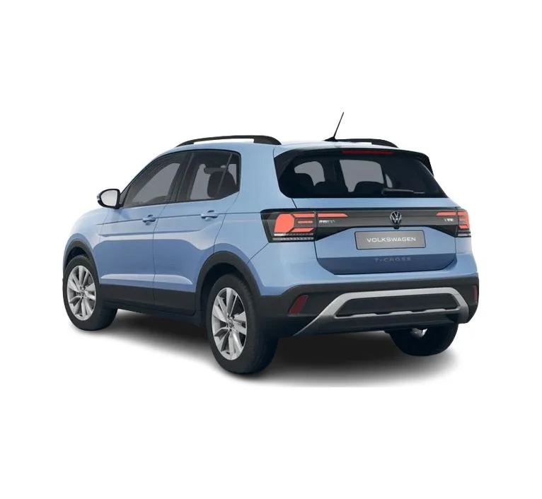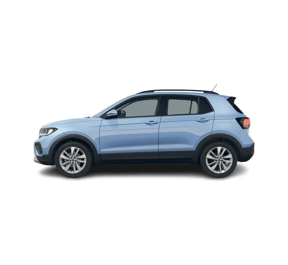 Volkswagen T-Cross w wersji Life Plus to kompaktowy SUV, który łączy nowoczesny design z uniwersalnym charakterem. Krótka sylwetka, wyraźne linie nadwozia i podwyższony prześwit sprawiają, że auto świetnie odnajduje się w miejskim otoczeniu. Styl jest dynamiczny, ale jednocześnie stonowany, dzięki czemu T-Cross pasuje zarówno do codziennego użytkowania, jak i bardziej formalnych okazji. To samochód, który wygląda świeżo i ponadczasowo.