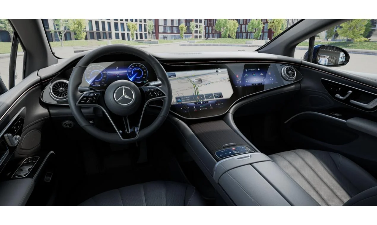 Kabina EQS 500 została zaprojektowana jako luksusowa przestrzeń do długich podróży. Wnętrze jest bardzo ciche, przestronne i wykończone z dbałością o każdy detal. Pozycja za kierownicą sprzyja komfortowej, spokojnej jeździe, a pasażerowie mają warunki porównywalne z klasą S. To auto, w którym nawet wielogodzinna trasa nie męczy.