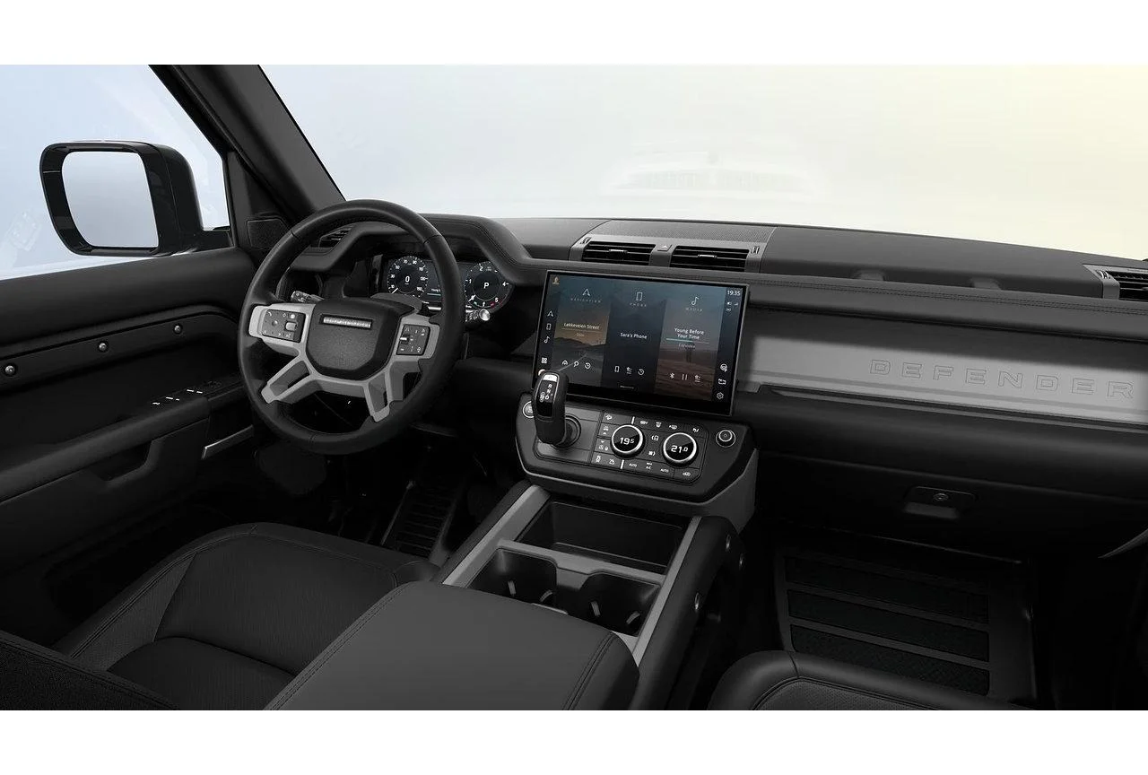 Wnętrze Defendera 110 S łączy wytrzymałe materiały z cyfrową technologią. Duży ekran systemu multimedialnego, cyfrowe zegary i rozbudowane systemy łączności tworzą nowoczesne środowisko kierowcy. Kabina oferuje przestrzeń dla pięciu pasażerów oraz bardzo pojemny bagażnik. To samochód, który sprawdzi się zarówno w codziennym użytkowaniu, jak i podczas długich wypraw.