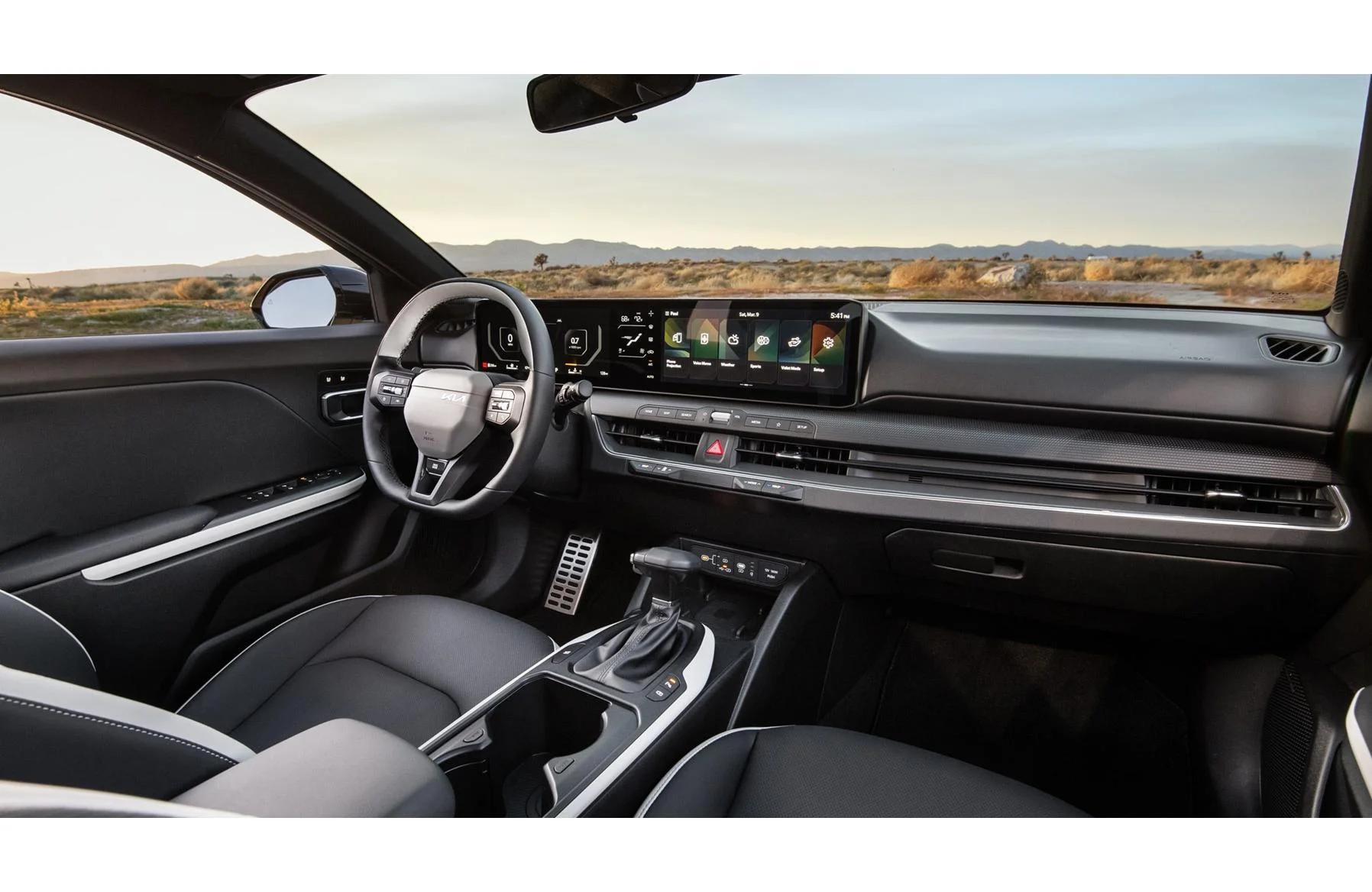 Wnętrze Kii K4 jest funkcjonalne i przejrzyste, z naciskiem na intuicyjną obsługę. Kokpit został zaprojektowany w sposób czytelny, a najważniejsze elementy są łatwo dostępne dla kierowcy. Kabina oferuje wystarczającą ilość miejsca dla pasażerów, zarówno z przodu, jak i z tyłu. To wnętrze stworzone do codziennego, praktycznego użytkowania.