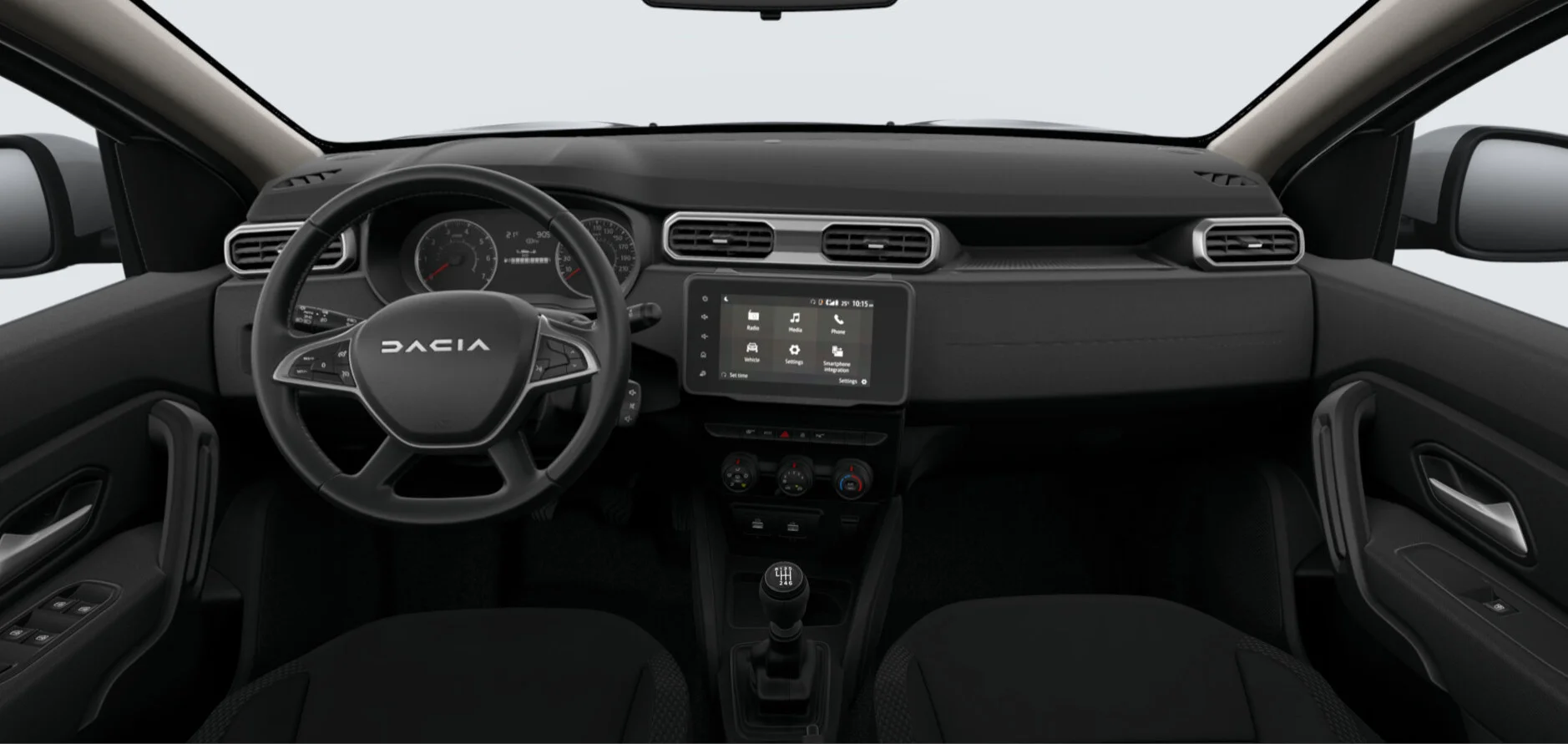Wnętrze Dacii Duster zostało zaprojektowane z myślą o funkcjonalności i komforcie. Przestronna kabina oferuje miejsce dla pięciu pasażerów i wygodne siedzenia. Można również dostosować konfigurację wnętrza, aby uzyskać więcej przestrzeni na bagaż lub pasażerów. Tapicerka jest wykonana z wysokiej jakości materiałów, a białe przeszycia dodają elegancji i stylu.