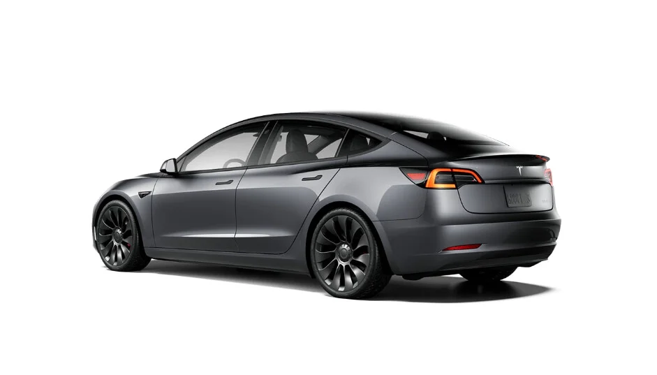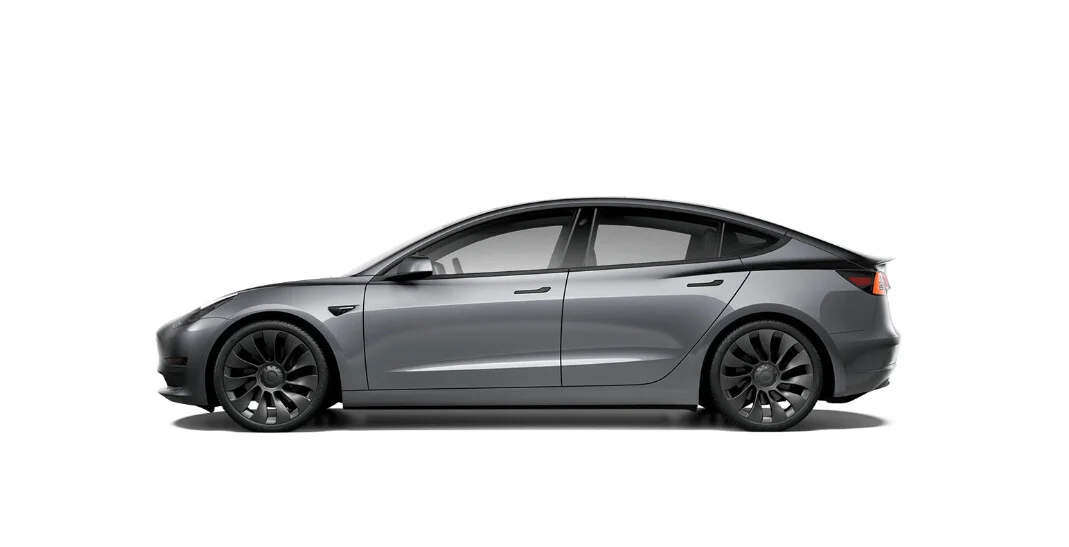 Z zewnątrz Tesla Model 3 Performance prezentuje się nowocześnie i aerodynamicznie. Ma smukłe proporcje, gładkie linie i minimalistyczną sylwetkę, która wyróżnia ją na drodze. Charakterystycznym elementem jest brak tradycyjnej atrapy chłodnicy, zastąpionej przez gładką, zamkniętą przednią część nadwozia. To nadaje mu unikalny wygląd i poprawia aerodynamikę, co przekłada się na wydajność i zasięg.
