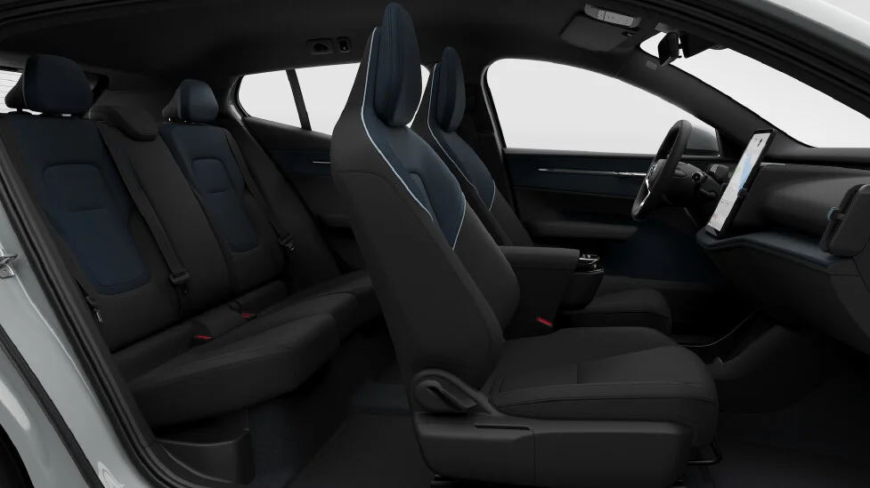 Volvo EX30 Electric to elektryczny samochód osobowy o nowoczesnym i komfortowym wnętrzu. Samochód oferuje miejsce dla pięciu pasażerów, a ergonomiczne fotele zapewniają wygodę podczas podróży. Oparcie tylnej kanapy jest podzielone w stosunku 40/60, co umożliwia przewożenie pasażerów i większego bagażu.