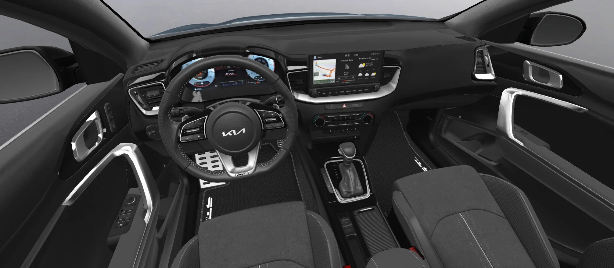 Wnętrze Kia Proceed jest eleganckie i przestronne. Kierowca i pasażerowie mają do dyspozycji komfortowe fotele pokryte wysokiej jakości materiałami. Deska rozdzielcza została zaprojektowana w sposób ergonomiczny, umożliwiając łatwy dostęp do wszystkich potrzebnych funkcji i systemów. Wyposażenie obejmuje także zaawansowany system multimedialny z dotykowym ekranem, obsługujący funkcje takie jak nawigacja, system audio i integrację smartfonów.