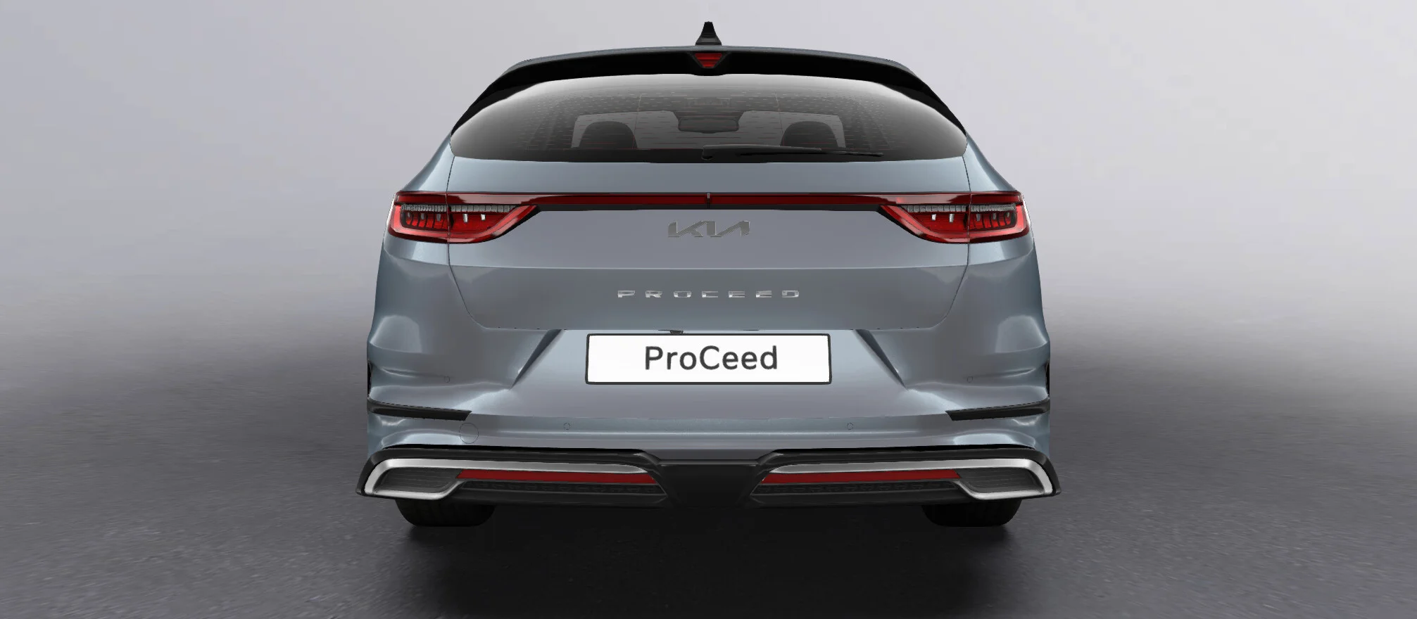 Z zewnątrz Kia Proceed wyróżnia się nowoczesnym designem. Ma smukłą sylwetkę typową dla kombi, z opadającą linią dachu, która nadaje mu bardziej dynamiczny wygląd. Charakterystyczne cechy obejmują agresywnie stylizowane reflektory z technologią LED oraz dużą atrapę chłodnicy w kształcie "tygrysiego nosa", która jest charakterystyczna dla modeli marki Kia. Dodatkowo, pojazd jest wyposażony w sportowe detale, takie jak wloty powietrza, dyfuzor tylny oraz podwójne chromowane końcówki układu wydechowego.