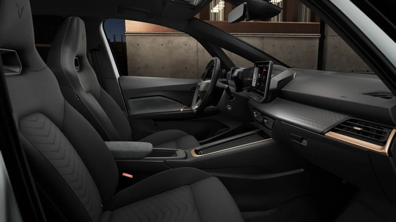 Wnętrze Cupra Born 58kWh zostało zaprojektowane z myślą o komforcie i funkcjonalności. Kierowca i pasażerowie znajdą tam przestronną kabinę z ergonomicznie ułożonymi fotelami oraz najnowszymi technologiami. Na uwagę zasługuje duży ekran dotykowy, który pełni funkcję interfejsu sterującego dla systemu multimedialnego, nawigacji i innych funkcji samochodu. Ponadto, pojazd wyposażony jest w zaawansowane systemy bezpieczeństwa i asystentów kierowcy, które mają na celu podniesienie poziomu ochrony i komfortu podróży.