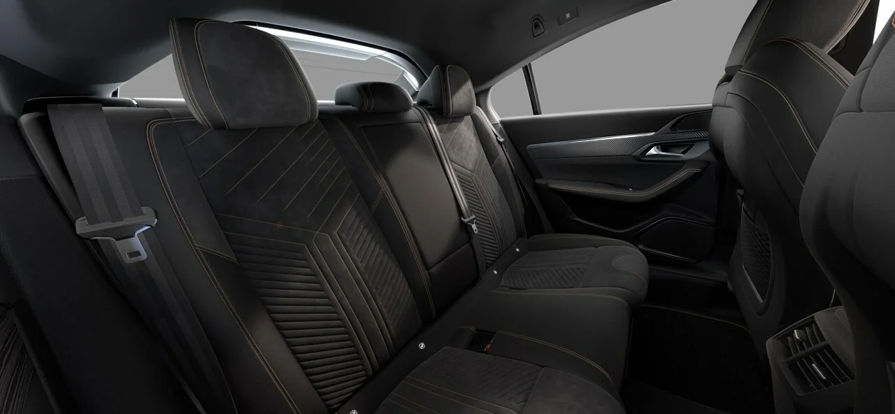 Wnętrze zostało starannie zaprojektowane, aby zapewnić kierowcy i pasażerom komfort i funkcjonalność. Znajdziemy tu wysokiej jakości materiały wykończeniowe, ergonomiczne fotele i nowoczesne rozwiązania technologiczne. Kierowca ma do dyspozycji intuicyjnie zlokalizowane przyciski i przełączniki, a centralną rolę odgrywa cyfrowy kokpit i duży dotykowy ekran systemu multimedialnego.