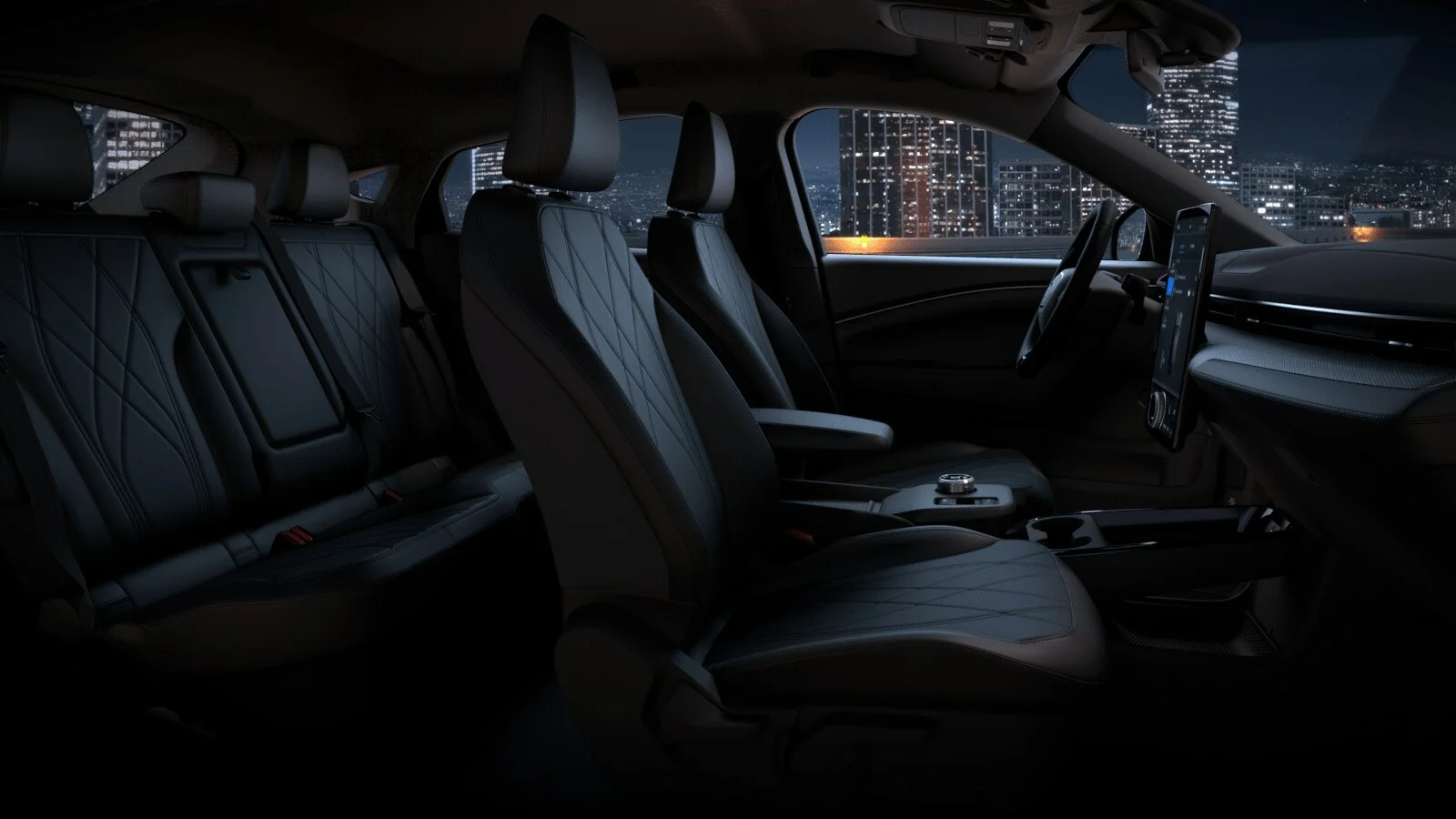 Wnętrze pojazdu zostało zaprojektowane z myślą o komforcie i innowacyjności. Przestronna kabina oferuje miejsce dla pięciu pasażerów oraz bagażnik z pojemnością dostosowaną do potrzeb codziennego użytkowania. Zaawansowany system infotainment z dużym, centralnie umieszczonym ekranem dotykowym zapewnia łatwy dostęp do funkcji samochodu oraz umożliwia integrację z urządzeniami mobilnymi.