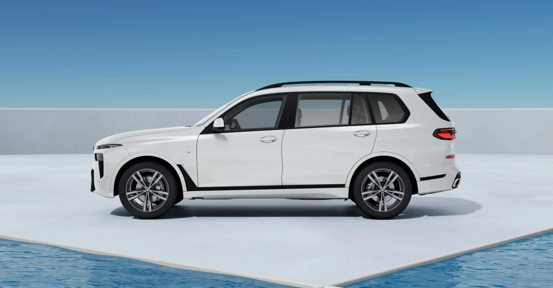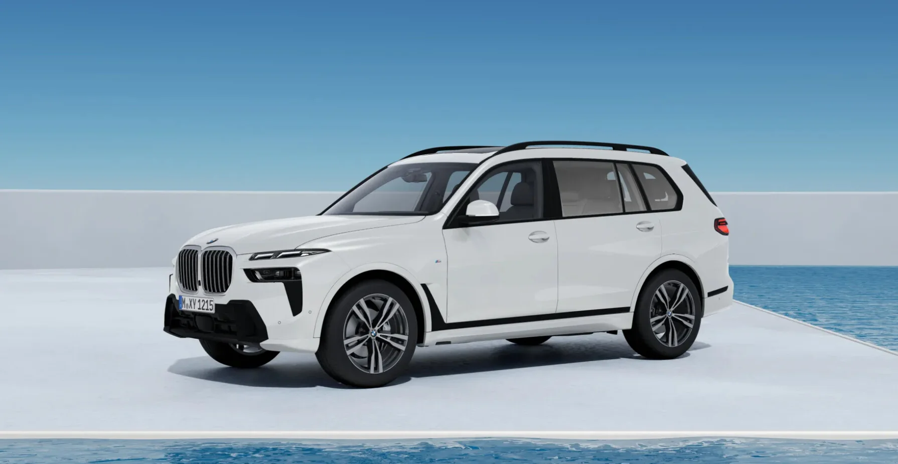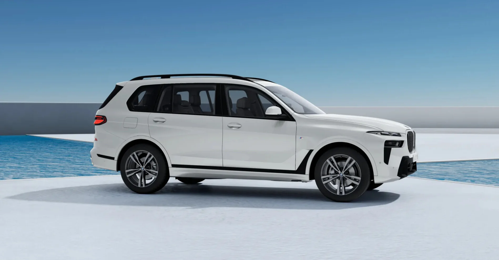 Z zewnątrz BMW X7 xDrive40d prezentuje się imponująco. Jego projektowanej sylwetki nadają charakterystyczne cechy marki, takie jak duży wlot powietrza z przodu, charakterystyczna podwójna nerkowata atrapa chłodnicy i smukłe, ostre kształty. Duże felgi i proporcje nadwozia nadają mu majestatycznego wyglądu.