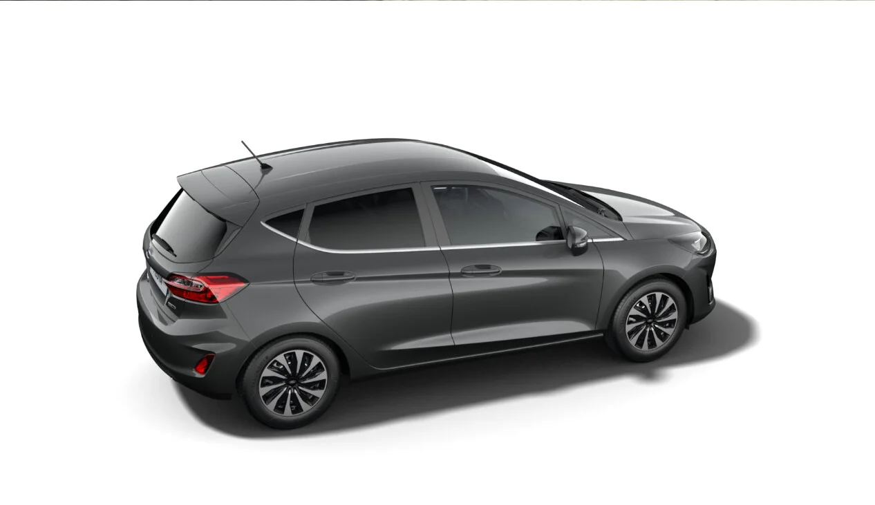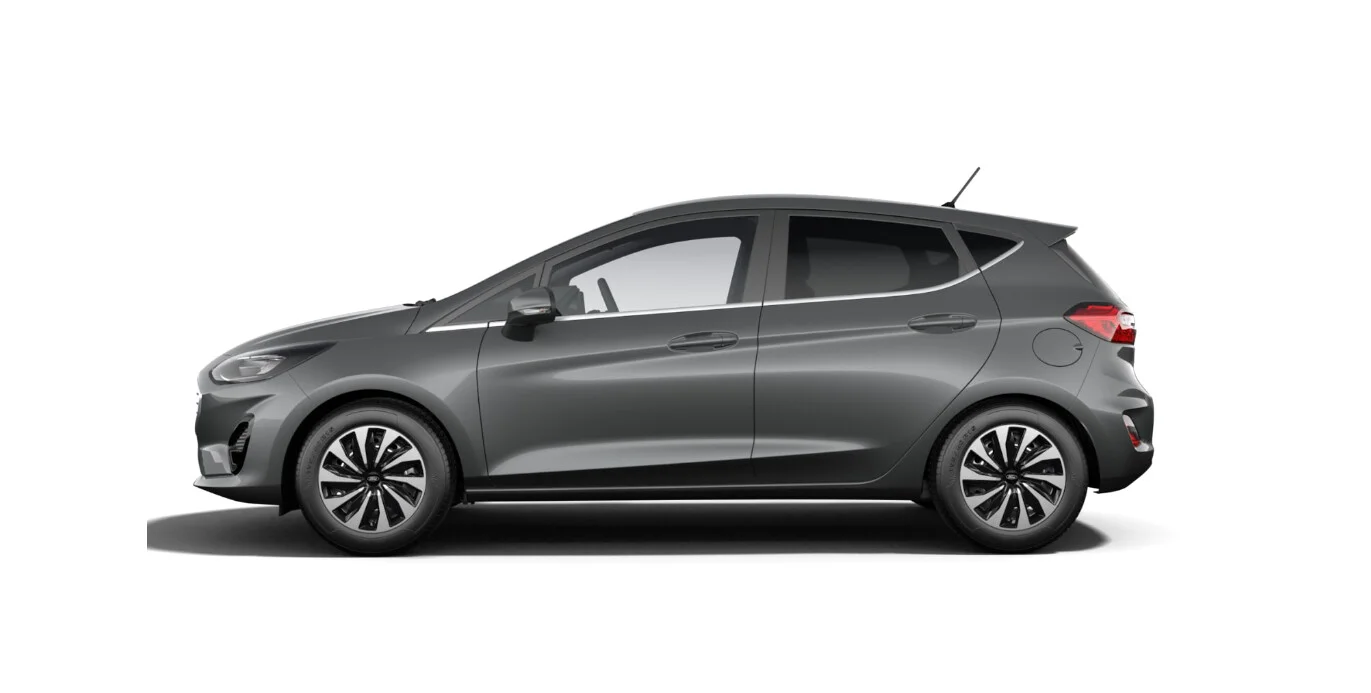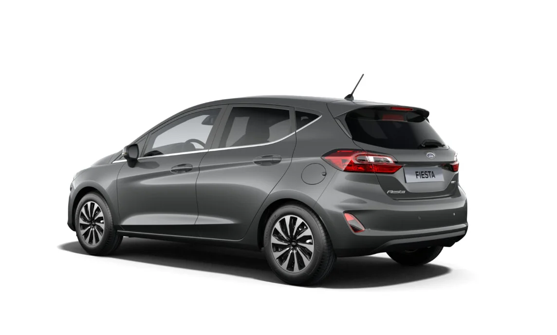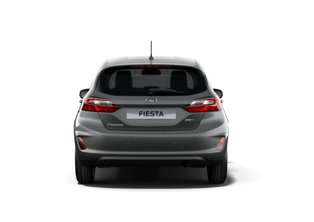 Z przodu Fiesta charakteryzuje się charakterystyczną, dużą atrapą chłodnicy oraz agresywnie stylizowanymi reflektorami, które nadają mu dynamiczny wygląd. Linie nadwozia są smukłe i nowoczesne, a wyprofilowane kształty sprawiają, że Fiesta prezentuje się atrakcyjnie i nowocześnie.