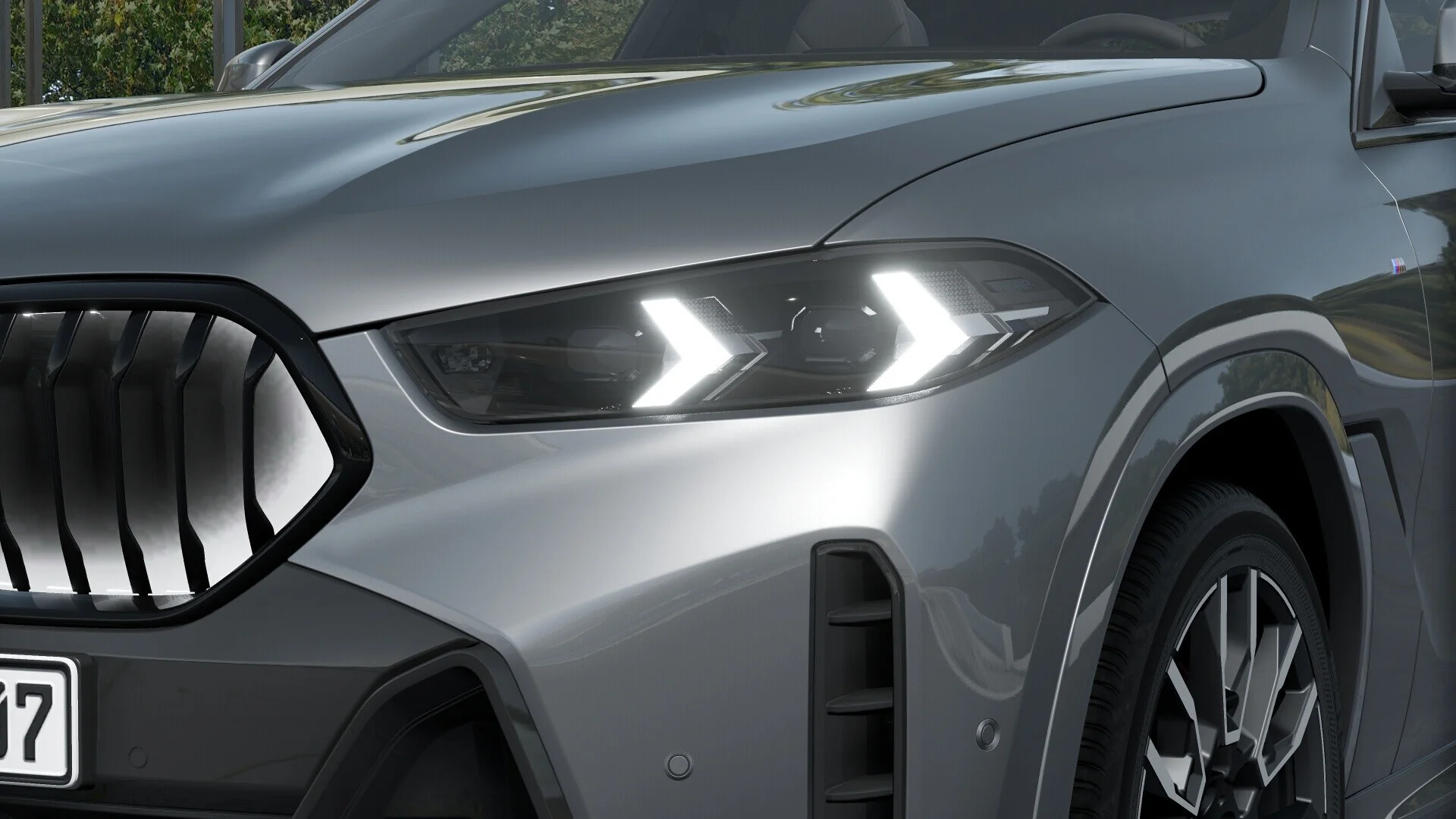 Front pojazdu BMW X6 30d prezentuje się imponująco, z charakterystycznym szerokim grill nerkowym BMW i precyzyjnie wkomponowanymi reflektorami LED. Agresywny wygląd nadaje temu SUV-owi unikalnego charakteru.