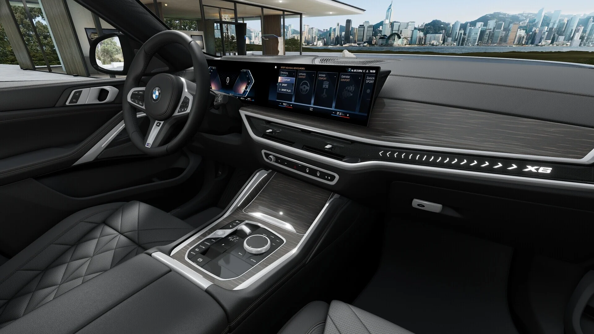 Wnętrze BMW X6 30d jest zachwycająco luksusowe, z wysokiej jakości materiałami wykończeniowymi, nowoczesnym designem i zaawansowanymi technologicznie elementami. Kabina jest przestronna i wygodna, a ergonomiczne fotele z dbałością o szczegóły zapewniają komfortowe miejsce zarówno dla kierowcy, jak i pasażerów. System multimedialny i nawigacyjny, połączony z najnowszymi rozwiązaniami technologicznymi, oferuje intuicyjną obsługę i rozrywkę na najwyższym poziomie.