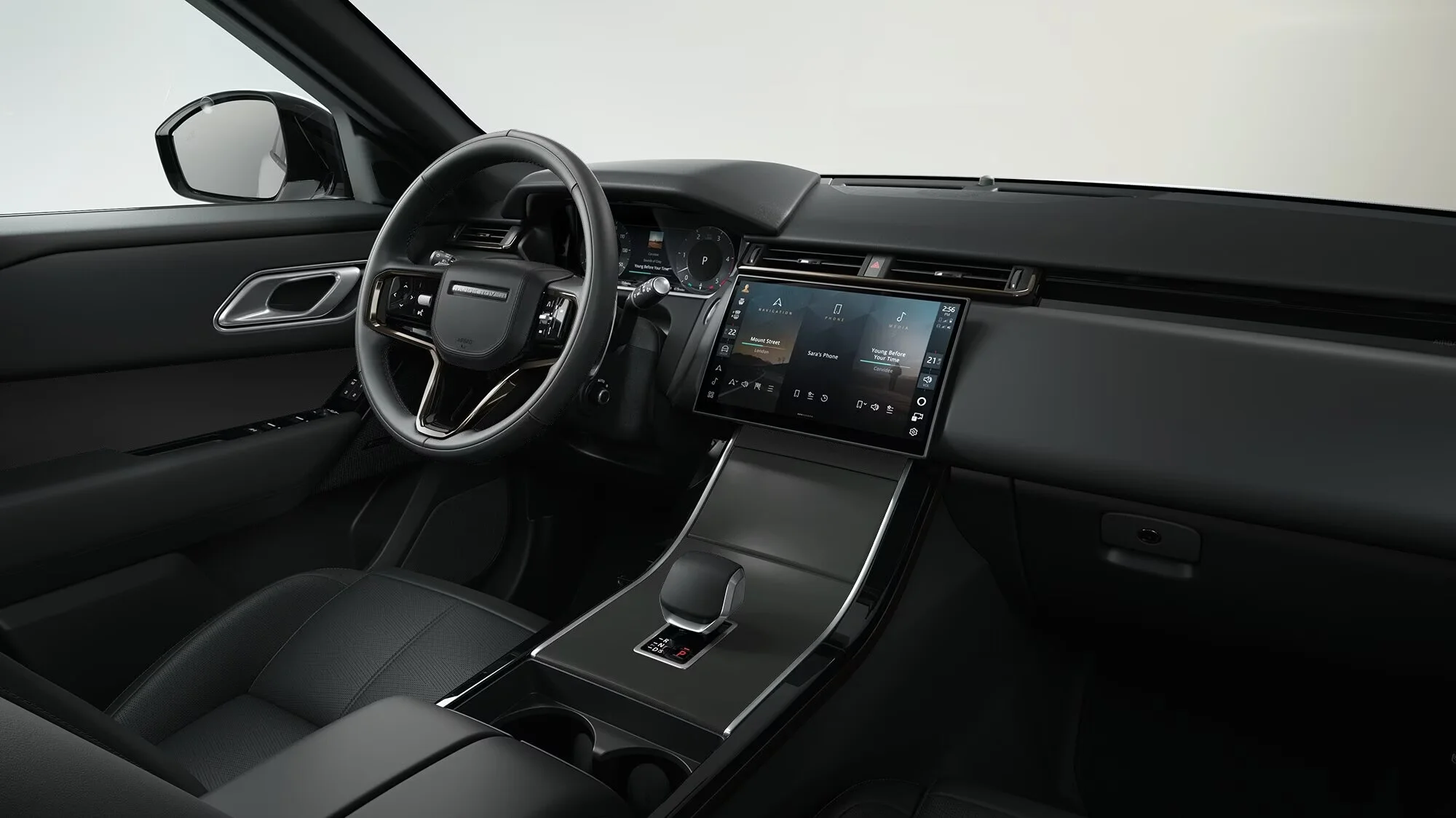 Wnętrze Range Rover Velar jest równie imponujące. Kabina samochodu jest obszerna, a jakość wykonania i użyte materiały są na najwyższym poziomie. Wyposażenie wnętrza obejmuje luksusowe skórzane siedzenia, nowoczesny system multimedialny z dużym ekranem dotykowym oraz wiele zaawansowanych opcji, takich jak system nagłośnienia marki Meridian czy podgrzewane i wentylowane fotele. Przestronność wnętrza i wygoda podróżowania są jednymi z głównych atutów tego modelu.