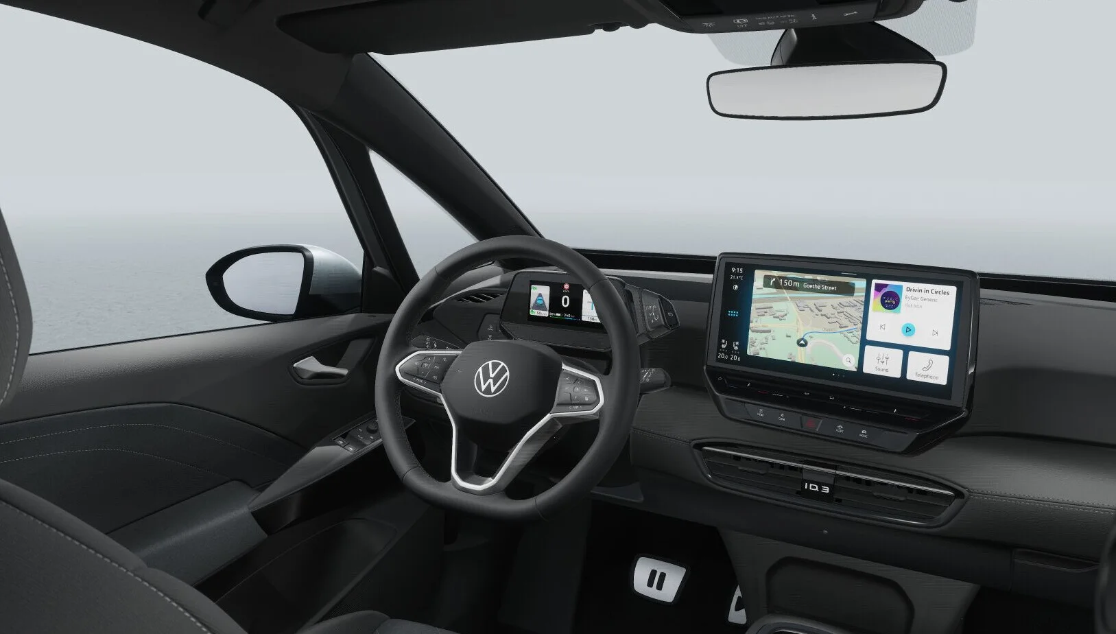 Technologia: ID.3 jest wyposażony w zaawansowane technologie, w tym duży ekran dotykowy, który służy jako interfejs do systemu infotainment i kontroli pojazdu. Wnętrze oferuje również cyfrowy kokpit i wiele innowacyjnych rozwiązań, takich jak nawigacja oparta na inteligencji sztucznej, system rozpoznawania mowy, a także możliwość aktualizacji oprogramowania zdalnie, co pozwala na stałe udoskonalanie funkcji pojazdu.