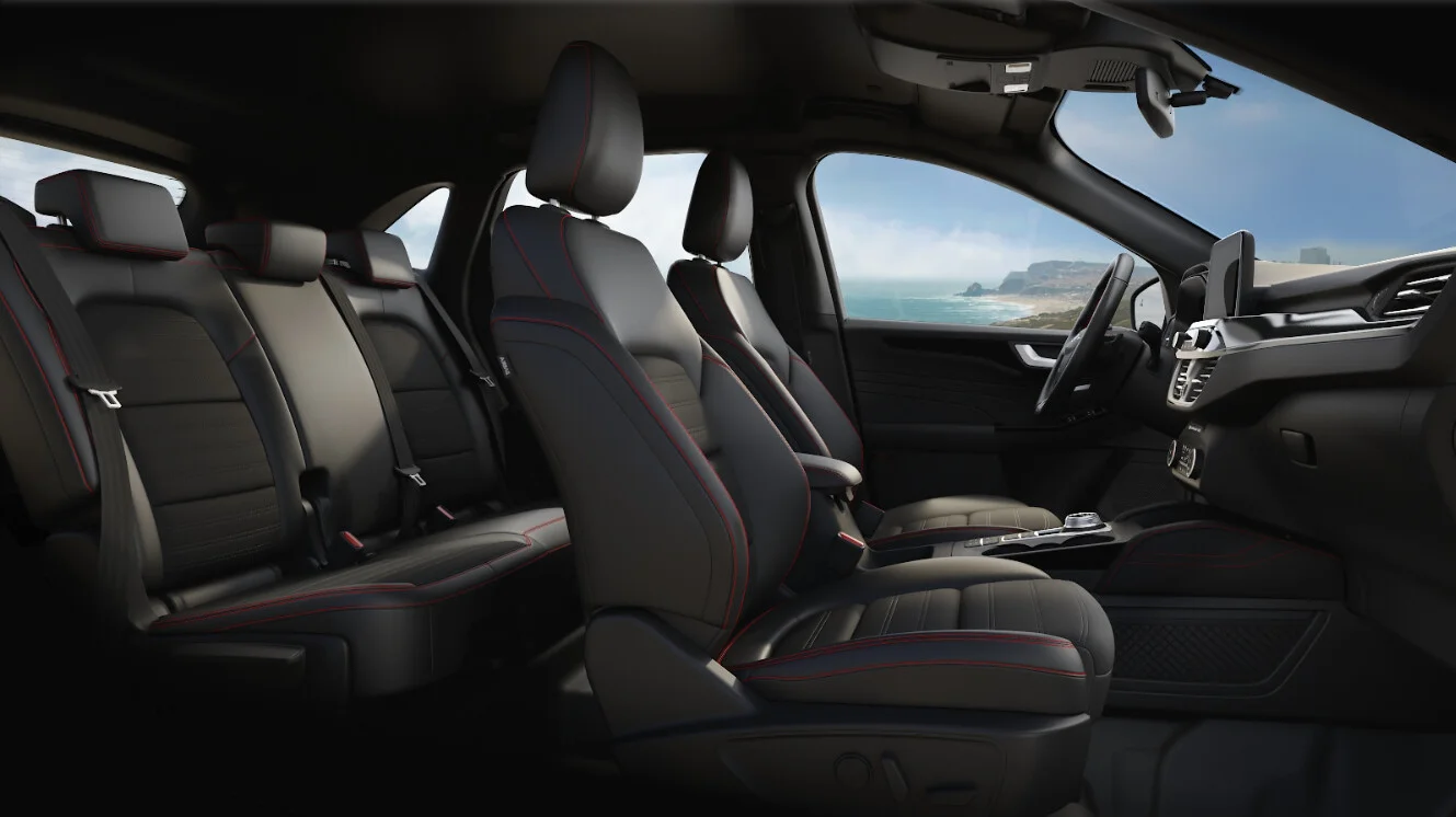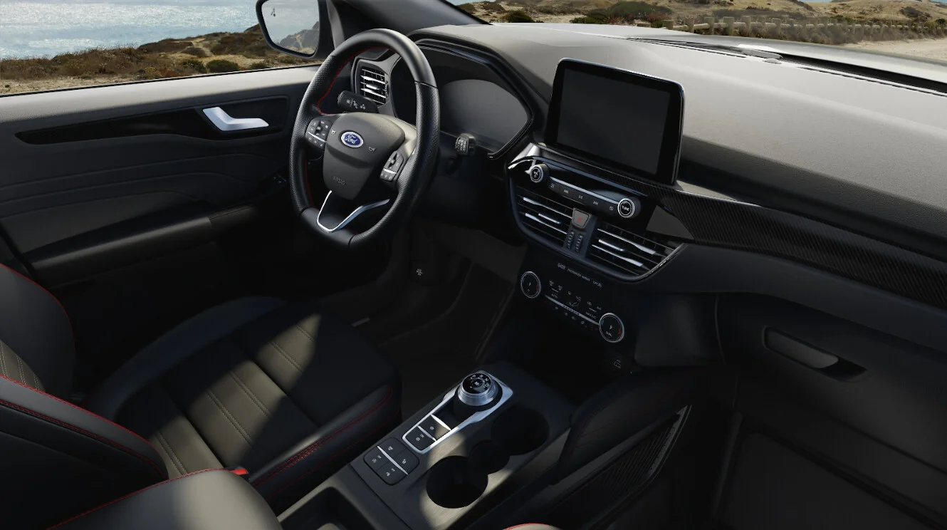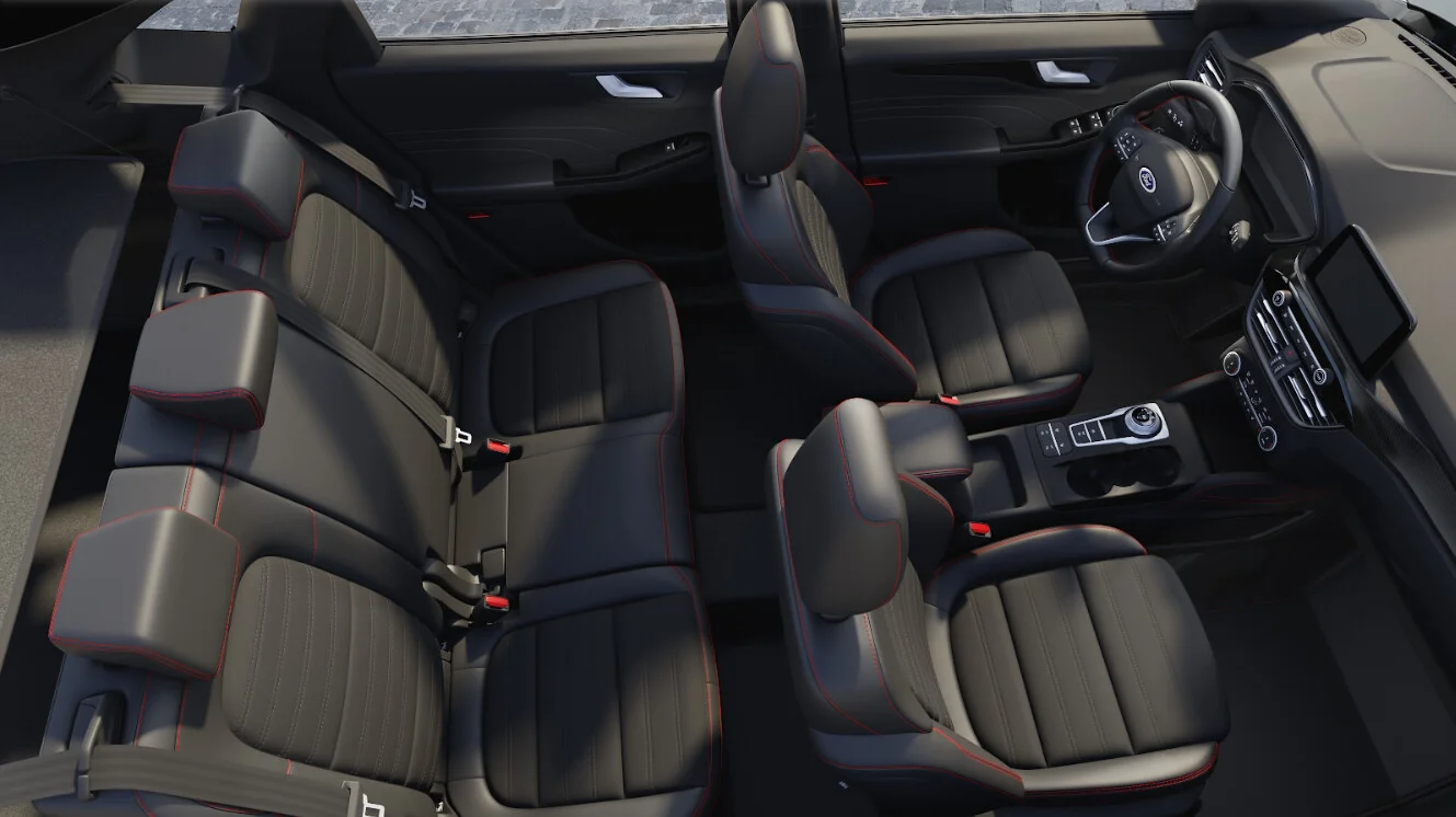 Wnętrze pojazdu zostało zaprojektowane z dbałością o detal i komfort podróży. Sportowe fotele, obszyte skórą i z charakterystycznymi przeszyciami ST-Line, zapewniają zarówno wsparcie w trakcie dynamicznej jazdy, jak i luksusową atmosferę. Kierowca cieszy się ergonomicznie ułożonym kokpitem z intuicyjnymi elementami sterującymi oraz nowoczesnym panelem rozdzielczym.