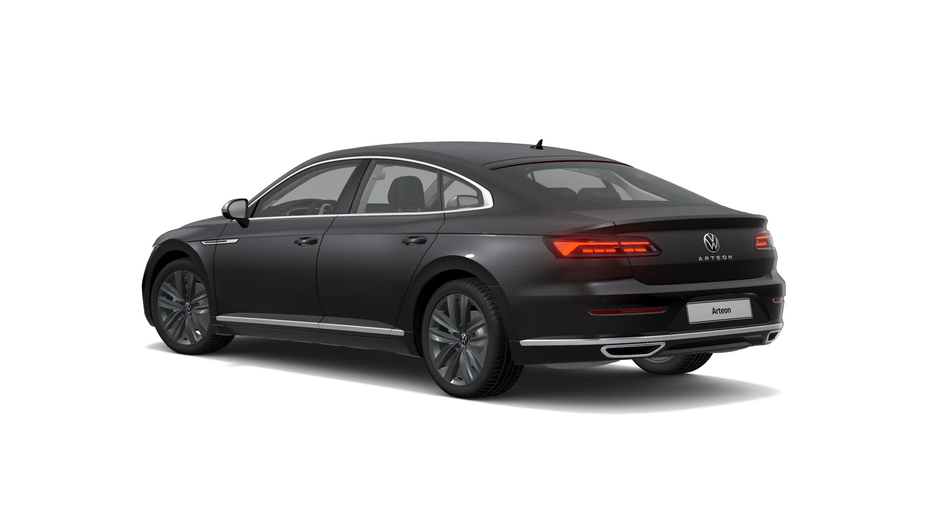 Zewnętrznie Arteon prezentuje się stylowo z 18-calowymi aluminiowymi obręczami Almere, reflektorami LED i eleganckim lakierem Popielatym "Mangan" metalik. Wyposażony w funkcje takie jak elektrycznie składane lusterka, ogrzewane dysze spryskiwaczy oraz gniazda USB-C.