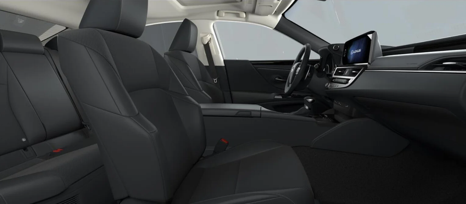 Wnętrze Lexusa ES charakteryzuje się ekskluzywnym wykończeniem z tapicerką ze skóry syntetycznej Tahara, elektryczną regulacją foteli i podgrzewanymi przednimi siedzeniami. Dwustrefowa klimatyzacja automatyczna zapewnia komfort podróży dla wszystkich pasażerów. Lexus ES jest także wyposażony w szereg zaawansowanych systemów bezpieczeństwa, w tym boczne kurtyny powietrzne i systemy stabilizacji toru jazdy.