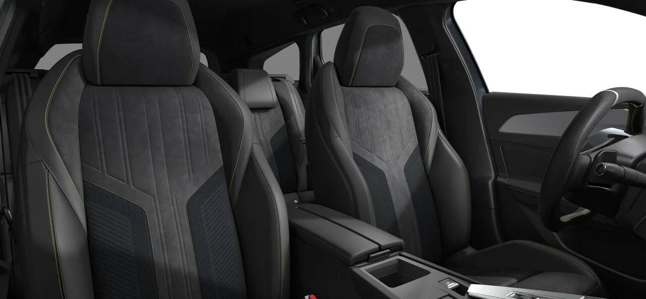 Wnętrze pojazdu łączy wysoką jakość wykonania z zaawansowanymi technologiami, tworząc przestrzeń, która jest zarówno wygodna, jak i inspirowana sportową pasją. Sportowe fotele z logo GT, wykończone w mieszance Alcantary i skóry, zapewniają doskonałe wsparcie i wygodę. Peugeot i-Cockpit® z cyfrowym zestawem wskaźników i dużym ekranem dotykowym do zarządzania systemem infotainment stanowi serce innowacyjnego kokpitu, który jest intuicyjny i łatwy w obsłudze.