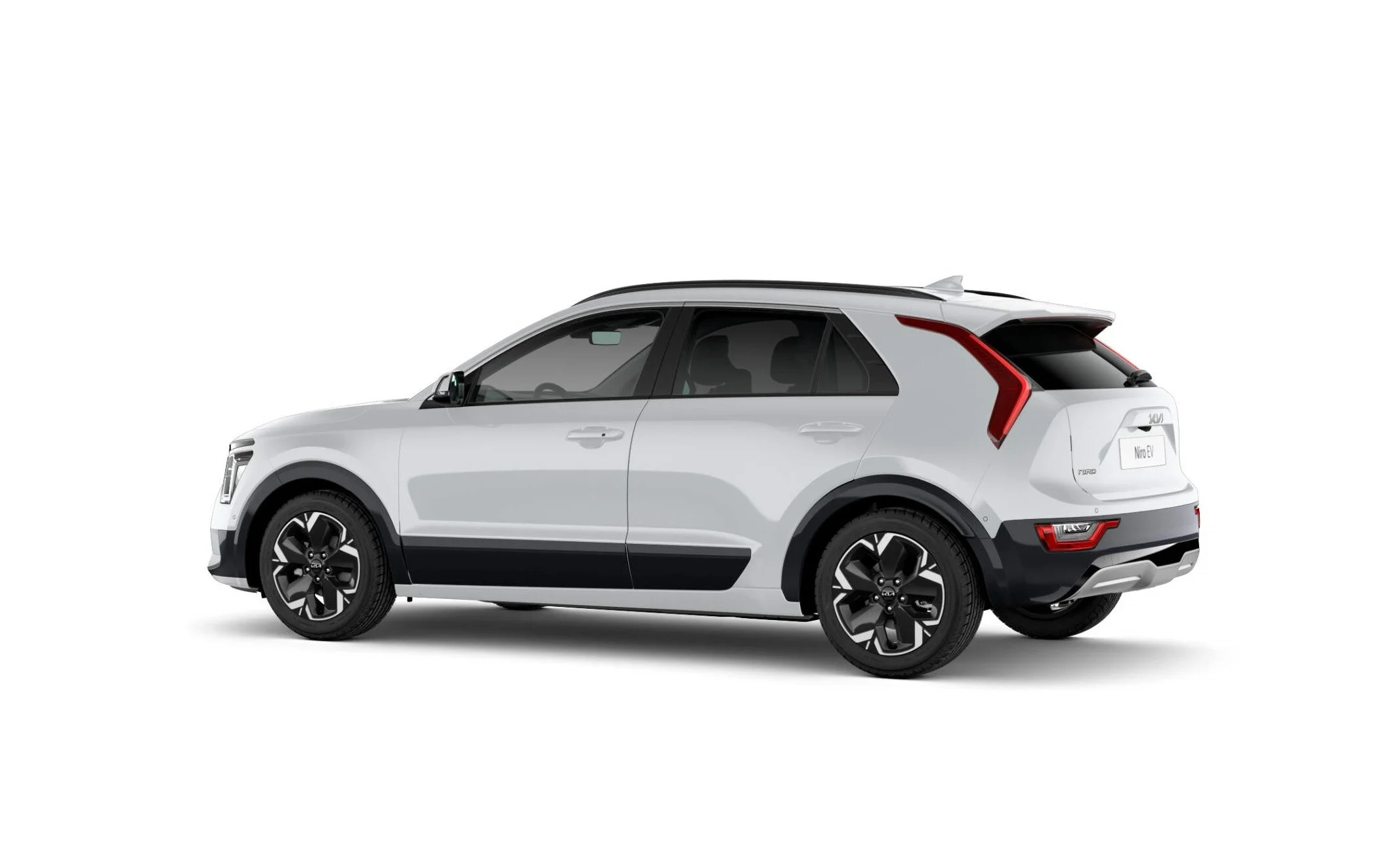 Design zewnętrzny Kia Niro EV wyróżnia się nowoczesnymi liniami i aerodynamiczną sylwetką, które nie tylko przyciągają wzrok, ale również optymalizują efektywność energetyczną. Charakterystyczne, futurystyczne reflektory LED, elegancka atrapa chłodnicy zatyczana, symbolizująca elektryczną naturę pojazdu, oraz 17-calowe felgi aluminiowe podkreślają jego innowacyjny charakter.