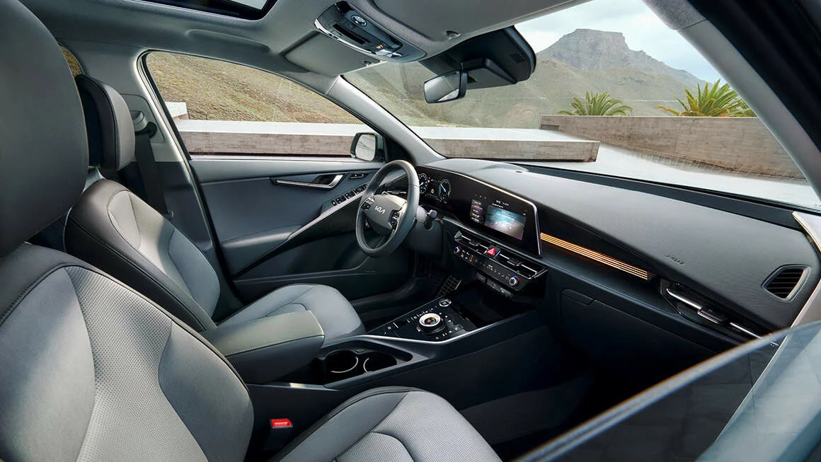Wnętrze pojazdu oferuje przestronną i wygodną kabinę, w której nowoczesność łączy się z funkcjonalnością. Wysokiej jakości materiały, ergonomicznie zaprojektowany kokpit oraz intuicyjny system infotainment z dużym ekranem dotykowym sprawiają, że każda podróż staje się przyjemnością. Kia Niro EV zapewnia również imponującą przestrzeń dla pasażerów i bagażu, co czyni go idealnym wyborem dla rodzin i osób aktywnie spędzających czas.