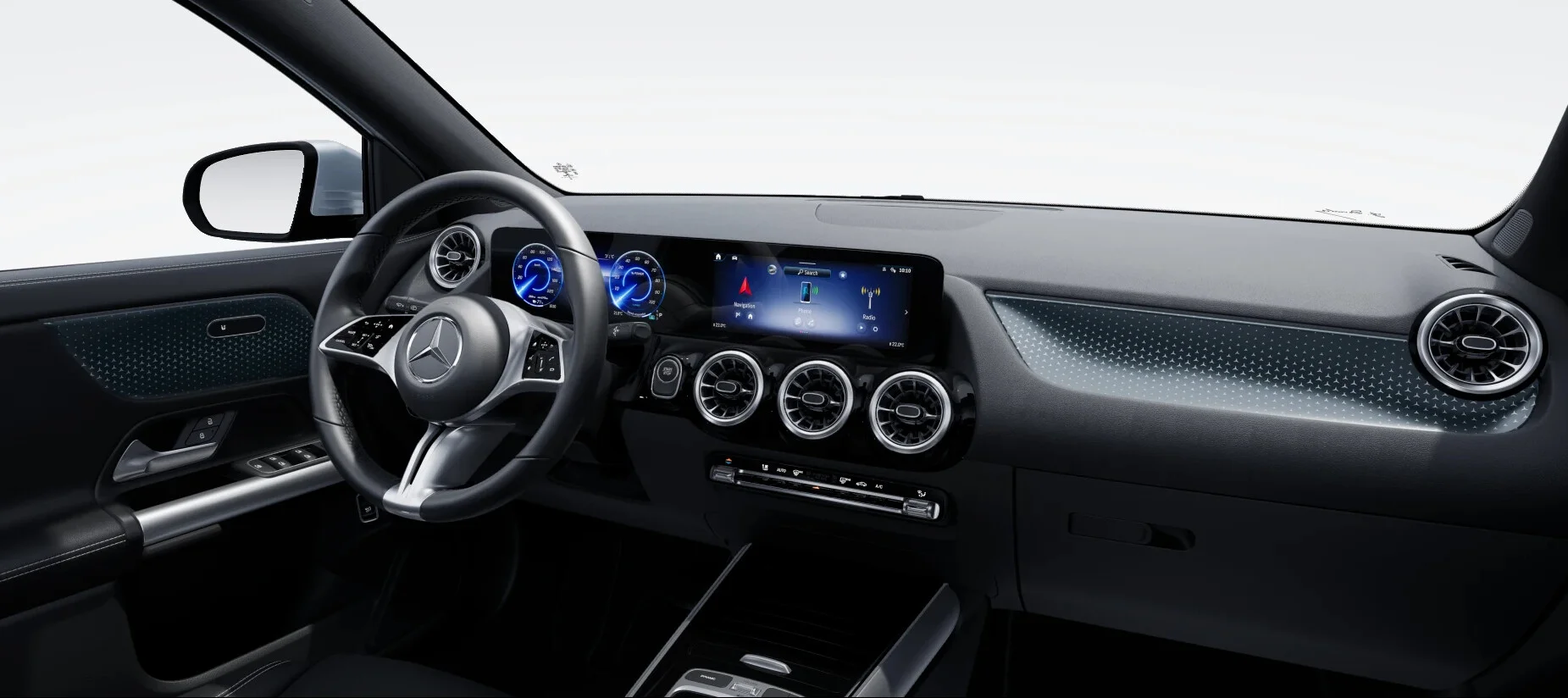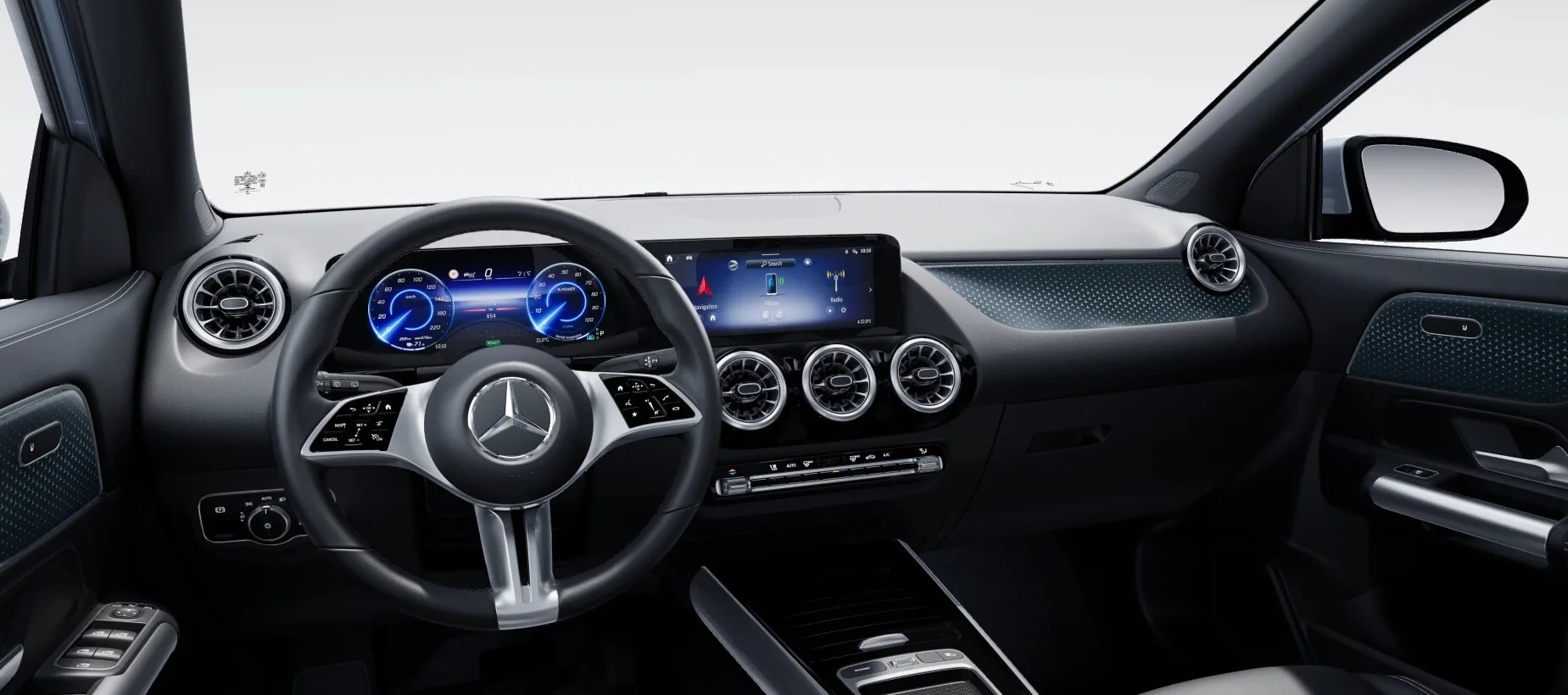 Wnętrze: Kabina EQA 250+ jest przestronna i zaprojektowana z myślą o najwyższym komforcie pasażerów. Wysokiej jakości materiały, ergonomicznie rozmieszczone elementy kokpitu oraz zaawansowany system infotainment MBUX z intuicyjnym ekranem dotykowym sprawiają, że każda podróż jest prawdziwą przyjemnością. Dodatkowe elementy, takie jak oświetlenie ambientowe, pozwalają na personalizację wnętrza i dodają mu wyjątkowego charakteru.