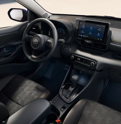 Wnętrze: Wnętrze Yarisa Style jest równie atrakcyjne, co jego zewnętrzna sylwetka. Kompaktowe, ale przestronne wnętrze wyposażone jest w wysokiej jakości materiały oraz zaawansowany system infotainment z dużym ekranem dotykowym, który umożliwia łatwą nawigację, dostęp do mediów i zarządzanie ustawieniami pojazdu. Komfortowe siedzenia z wyrafinowanymi wykończeniami i odpowiednim wsparciem zapewniają wygodę podczas jazdy, zarówno w mieście, jak i na dłuższych trasach.
