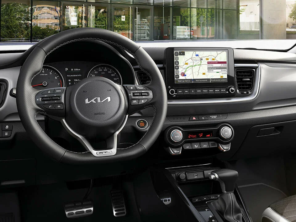 Wnętrze: Wnętrze Kii Stonic M oferuje komfort i nowoczesność z dbałością o detale. Kabina jest przestronna i funkcjonalna, z wygodnymi siedzeniami i wysokiej jakości materiałami. Centralnym punktem jest wygodny system infotainment z dużym ekranem dotykowym, który zapewnia łatwy dostęp do multimedialnych funkcji, w tym Apple CarPlay i Android Auto. Praktyczne rozwiązania przechowywania oraz funkcjonalny układ wnętrza sprawiają, że każda podróż jest przyjemna i komfortowa.