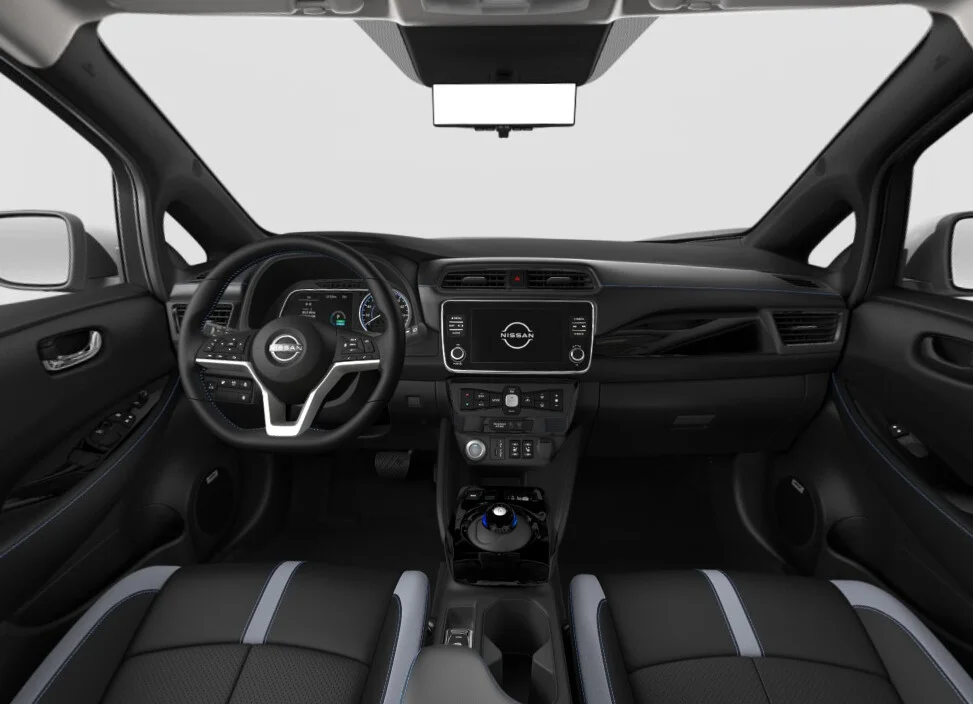 Wnętrze Nissan Leaf zostało zaprojektowane z myślą o komforcie i nowoczesności. Przestronna kabina oferuje wysokiej jakości materiały, ergonomiczne fotele i przemyślane rozwiązania, które zapewniają wygodę zarówno kierowcy, jak i pasażerom. System multimedialny NissanConnect z 8-calowym ekranem dotykowym, nawigacją oraz integracją smartfona poprzez Apple CarPlay i Android Auto, zapewnia łatwy dostęp do wszystkich funkcji pojazdu, a cyfrowy kokpit oferuje intuicyjny dostęp do informacji o pojeździe.