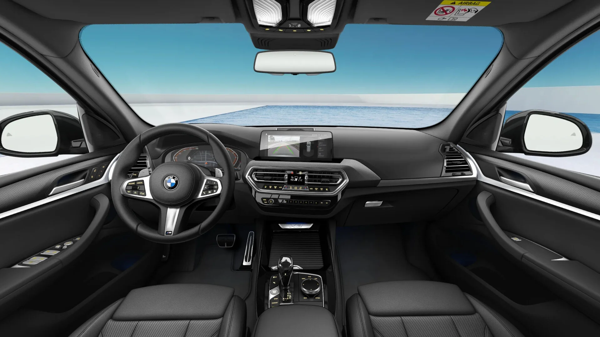 Wnętrze BMW X3 20d z M Pakietem to połączenie luksusu i sportowego stylu. Kabina została wykończona wysokiej jakości materiałami, takimi jak skóra Vernasca, aluminium i specjalne wstawki M. Ergonomicznie zaprojektowane sportowe fotele M zapewniają wyjątkowy komfort i doskonałe trzymanie boczne, co jest szczególnie ważne podczas dynamicznej jazdy. Wielofunkcyjna kierownica M wykończona skórą oraz nowoczesny system multimedialny iDrive 7.0 z dużym ekranem dotykowym oferują intuicyjny dostęp do wszystkich funkcji pojazdu, podkreślając jego nowoczesny charakter.