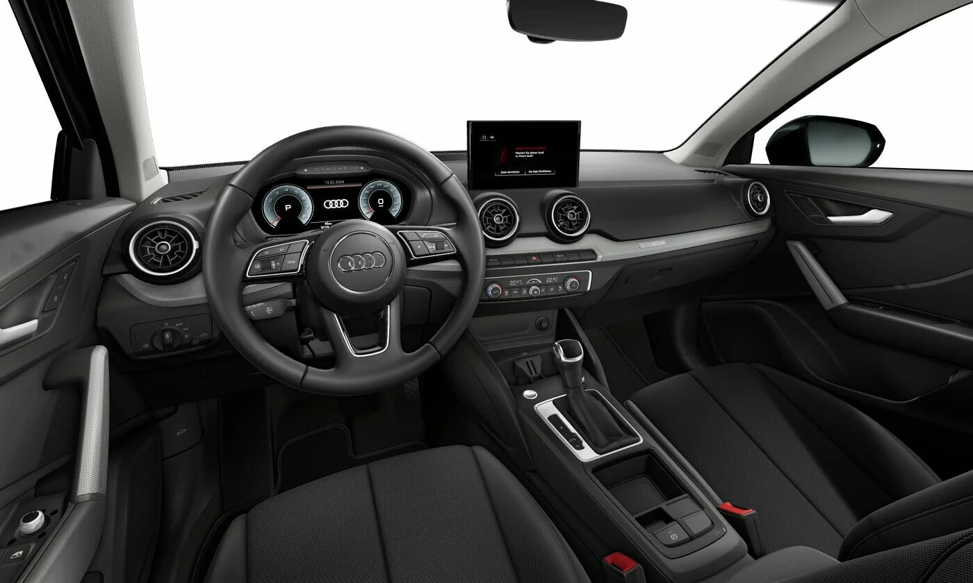 Wnętrze Audi Q2 zostało zaprojektowane z myślą o komforcie i funkcjonalności. Kabina oferuje wysokiej jakości materiały, ergonomiczne fotele i przemyślane rozwiązania, które zapewniają wygodę zarówno kierowcy, jak i pasażerom. Przestronne wnętrze jest dobrze zorganizowane, z licznymi schowkami i intuicyjnie rozmieszczonymi elementami sterowania. Nowoczesny system multimedialny MMI z 8,3-calowym ekranem dotykowym, nawigacją oraz integracją smartfona przez Apple CarPlay i Android Auto zapewnia łatwy dostęp do wszystkich funkcji pojazdu, a cyfrowy kokpit Audi Virtual Cockpit oferuje intuicyjny dostęp do informacji o pojeździe.