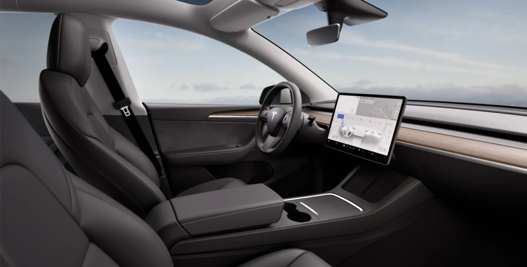 Wnętrze Tesla Model Y Performance zostało zaprojektowane z myślą o najwyższym komforcie i funkcjonalności. Przestronna kabina oferuje najwyższej jakości materiały, ergonomiczne fotele wykończone skórą i przemyślane rozwiązania, które zapewniają wyjątkową wygodę zarówno kierowcy, jak i pasażerom. Nowoczesny system multimedialny z dużym ekranem dotykowym, nawigacją oraz integracją smartfona przez Apple CarPlay i Android Auto zapewnia łatwy dostęp do wszystkich funkcji pojazdu. Cyfrowy kokpit oferuje intuicyjny dostęp do informacji o pojeździe, zwiększając komfort i bezpieczeństwo jazdy.