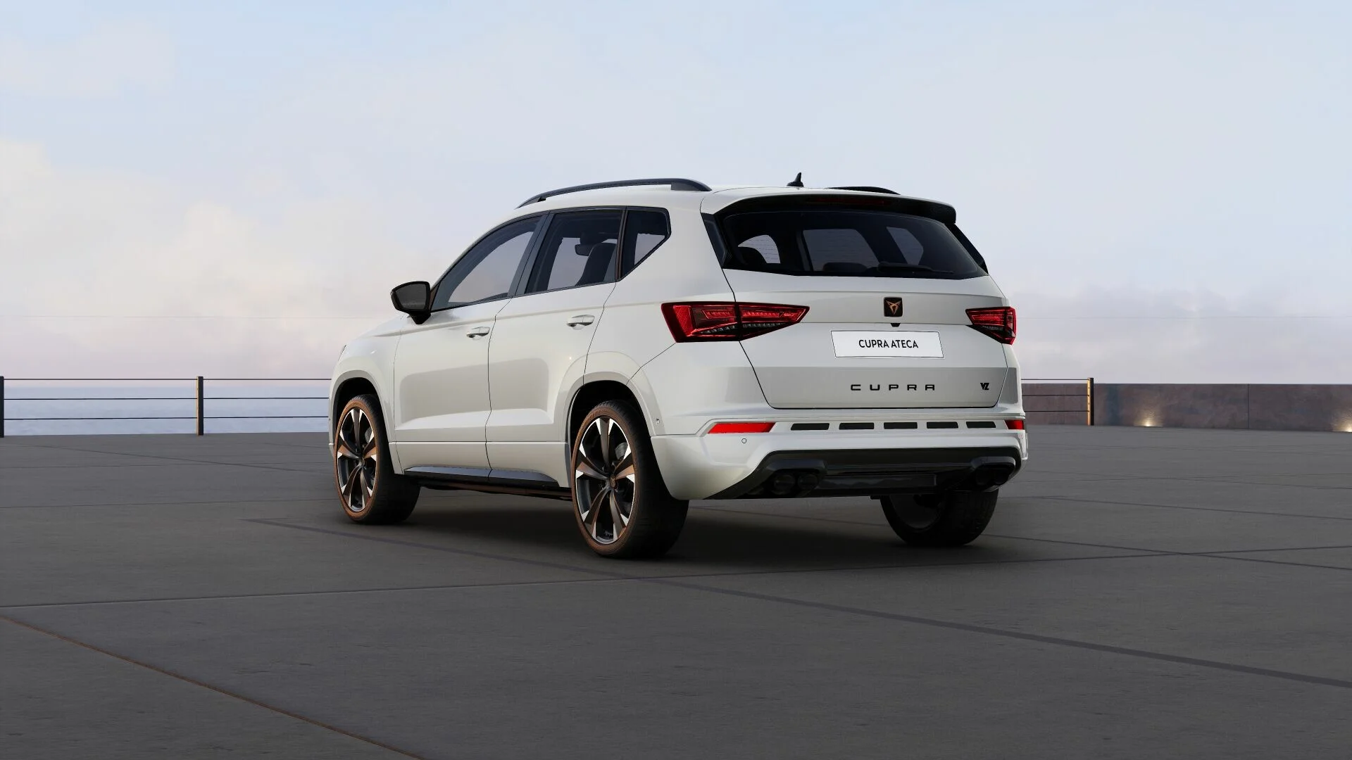 Zewnętrzny wygląd Cupra Ateca VZ wyróżnia się agresywnymi liniami i sportowymi akcentami. Charakterystyczny grill, smukłe reflektory LED oraz muskularna sylwetka nadają mu nowoczesny i dynamiczny wygląd. Stylowe detale, takie jak miedziane akcenty, eleganckie felgi aluminiowe oraz podwójne końcówki wydechu, podkreślają jego sportowy charakter i przyciągają wzrok na drodze.