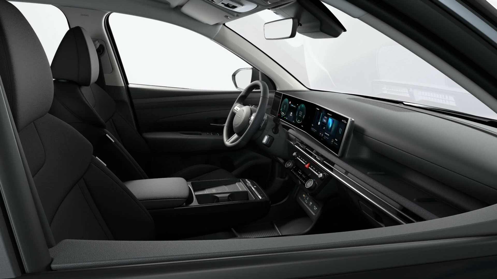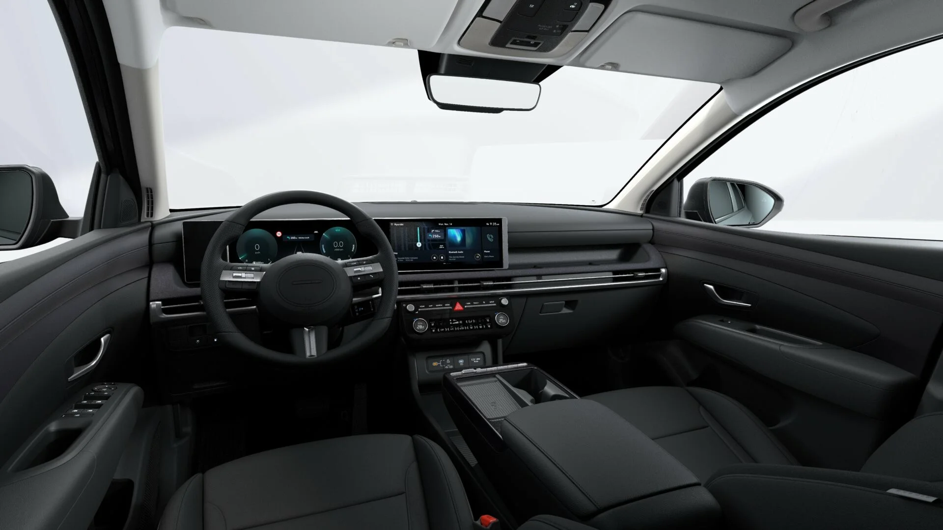 Wnętrze Hyundai Tucson 2024 Smart zostało zaprojektowane z myślą o najwyższym komforcie i funkcjonalności. Przestronna kabina oferuje wysokiej jakości materiały, ergonomiczne fotele oraz przemyślane rozwiązania, które zapewniają wygodę zarówno kierowcy, jak i pasażerom. Nowoczesny system multimedialny z dużym ekranem dotykowym, nawigacją oraz integracją smartfona poprzez Apple CarPlay i Android Auto zapewnia łatwy dostęp do wszystkich funkcji pojazdu. Cyfrowy kokpit oferuje intuicyjny dostęp do informacji o pojeździe, zwiększając komfort i bezpieczeństwo jazdy.