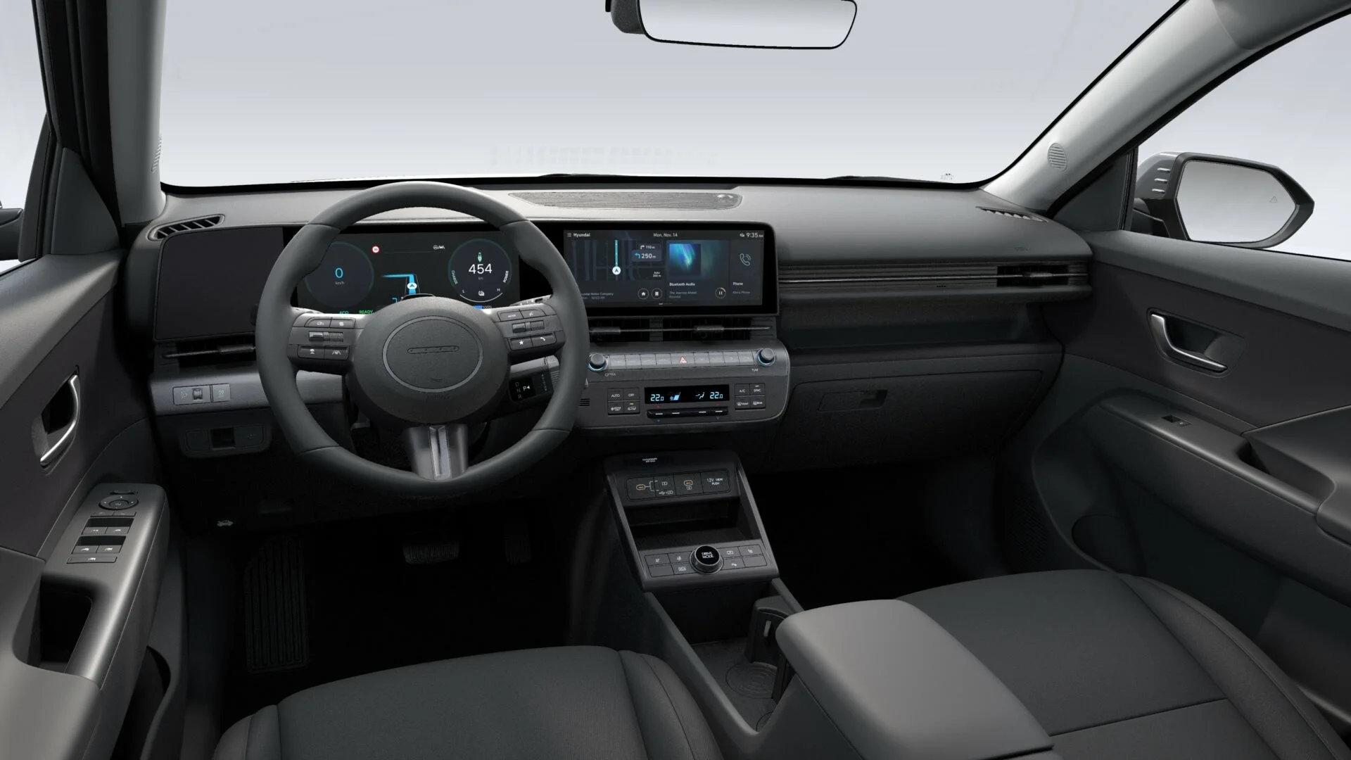 Wnętrze Hyundai Kona Electric zostało zaprojektowane z myślą o najwyższym komforcie i funkcjonalności. Przestronna kabina oferuje wysokiej jakości materiały, ergonomiczne fotele oraz przemyślane rozwiązania, które zapewniają wygodę zarówno kierowcy, jak i pasażerom. Nowoczesny system multimedialny z dużym ekranem dotykowym, nawigacją oraz integracją smartfona poprzez Apple CarPlay i Android Auto zapewnia łatwy dostęp do wszystkich funkcji pojazdu. Cyfrowy kokpit Hyundai oferuje intuicyjny dostęp do informacji o pojeździe, zwiększając komfort i bezpieczeństwo jazdy.
