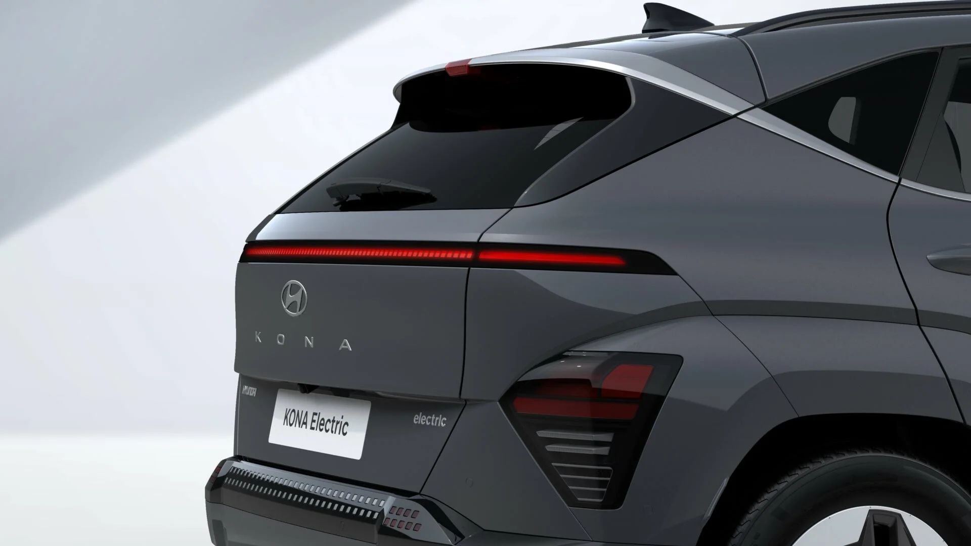 Zewnętrzny wygląd Hyundai Kona Electric wyróżnia się nowoczesnymi i dynamicznymi liniami. Charakterystyczny grill, smukłe reflektory LED oraz kompaktowa sylwetka nadają mu sportowy i prestiżowy wygląd. Stylowe detale, takie jak eleganckie felgi aluminiowe, subtelne chromowane akcenty i aerodynamiczne zderzaki, podkreślają jego nowoczesny charakter, tworząc pojazd, który przyciąga wzrok na drodze.
