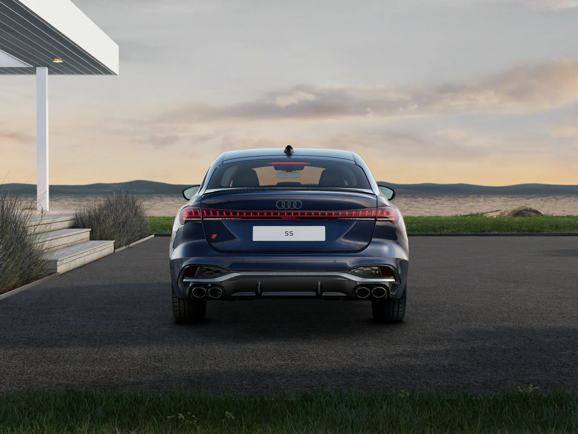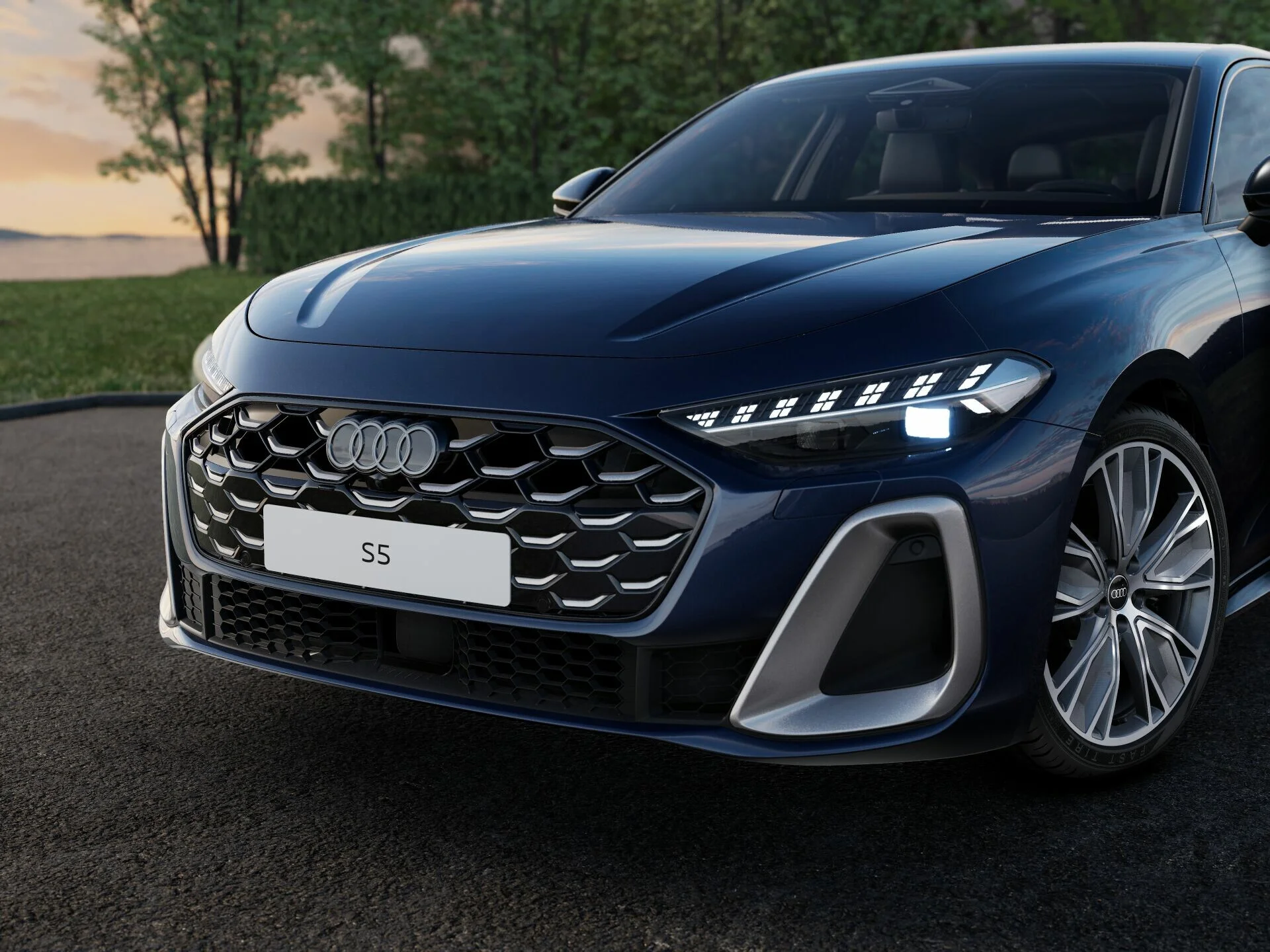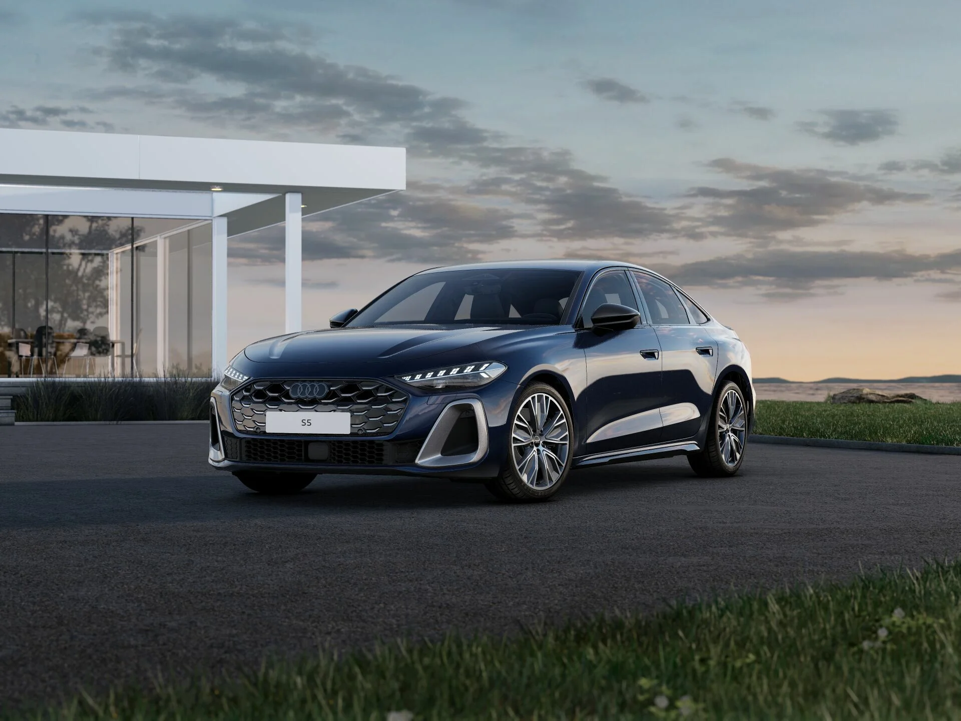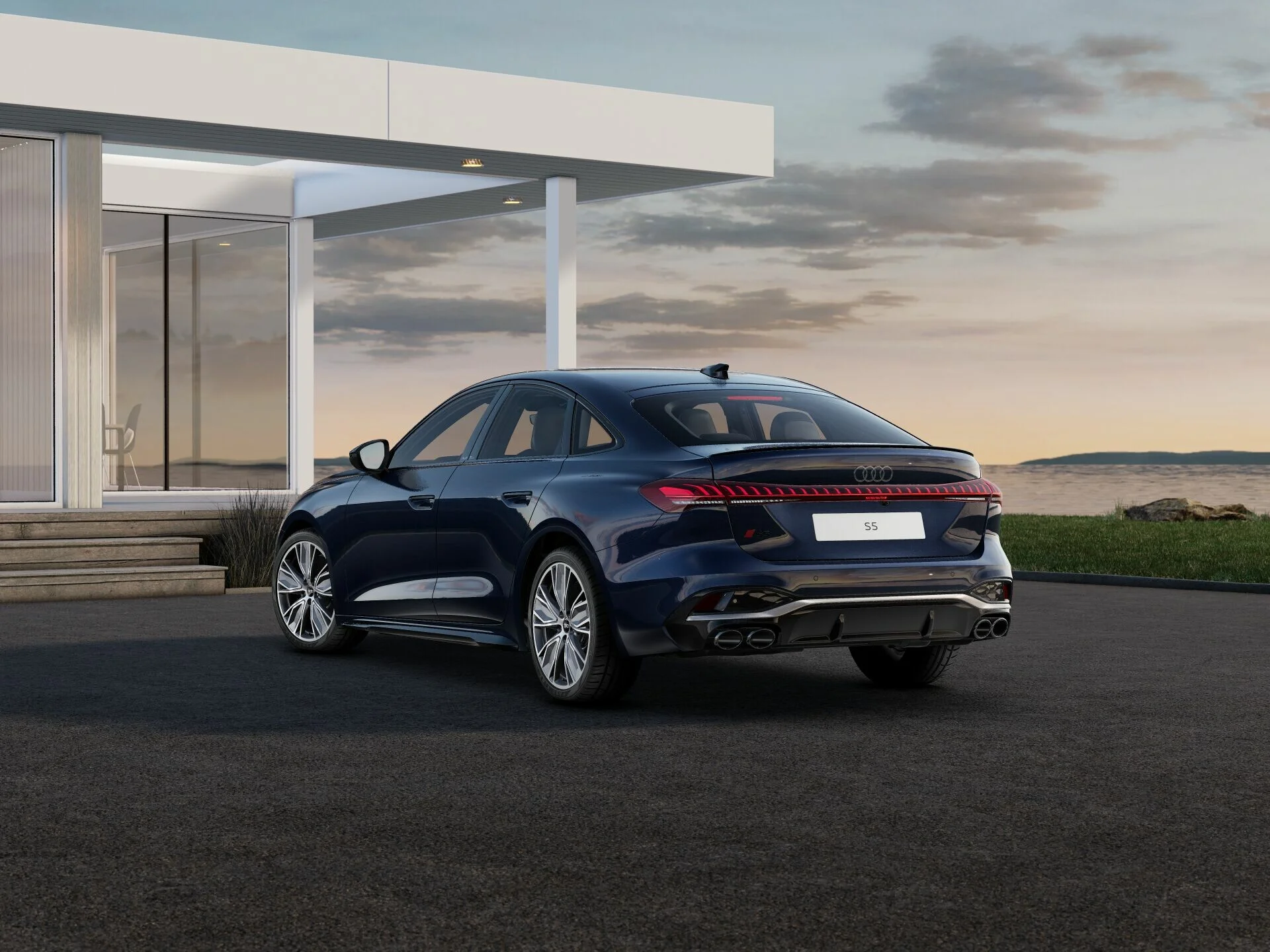 Zewnętrzny wygląd Audi S5 Limousine wyróżnia się nowoczesnymi i agresywnymi liniami. Charakterystyczny grill Singleframe, smukłe reflektory LED oraz elegancka, muskularna sylwetka nadają mu prestiżowy i sportowy wygląd. Stylowe detale, takie jak eleganckie felgi aluminiowe, subtelne chromowane akcenty, sportowe zderzaki i aerodynamiczne linie, podkreślają jego dynamiczny charakter, tworząc pojazd, który przyciąga wzrok na drodze.