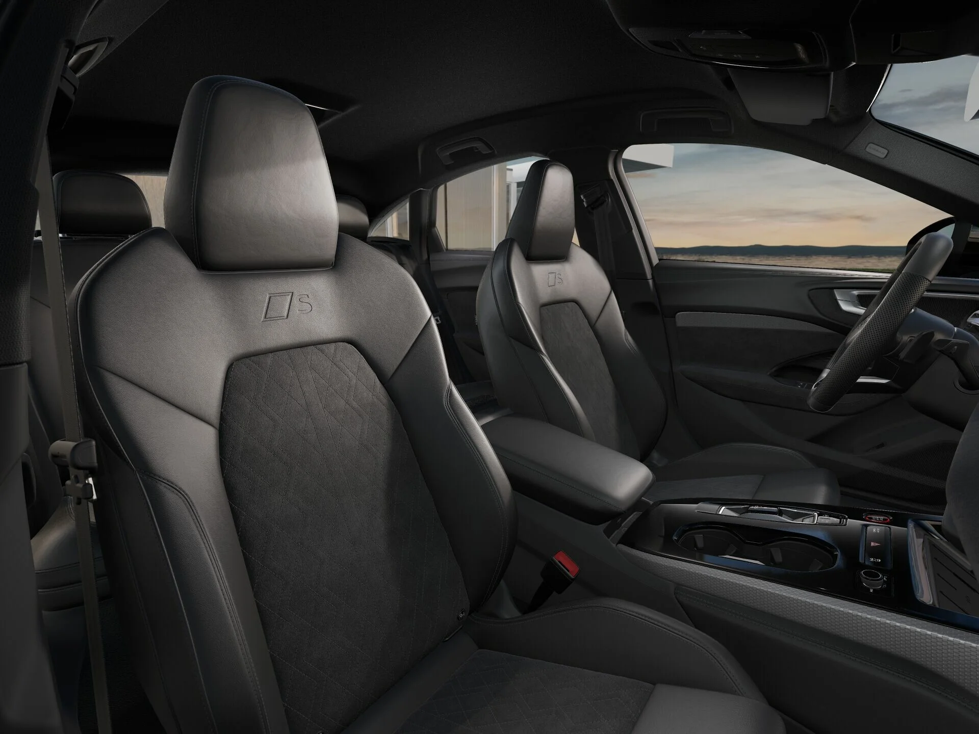 Wnętrze z siedzeniami sportowymi, kombinacja mikrofibra Dinamica/skóra w kolorze czarnym, czerwony szew Audi Sport GmbH
