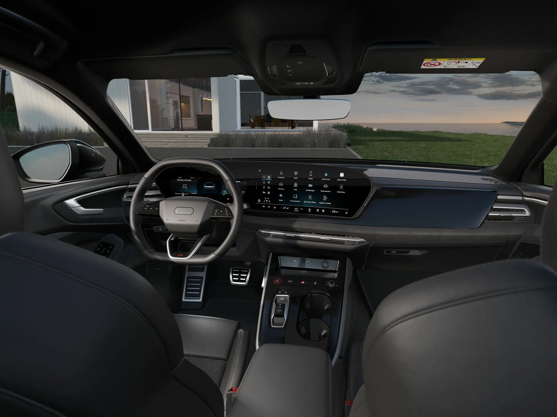 Wnętrze Audi S5 Limousine zostało zaprojektowane z myślą o najwyższym komforcie i sportowym charakterze. Przestronna kabina oferuje najwyższej jakości materiały, ergonomiczne sportowe fotele wykończone skórą oraz przemyślane rozwiązania, które zapewniają wygodę zarówno kierowcy, jak i pasażerom. Nowoczesny system multimedialny MMI Navigation Plus z dużym ekranem dotykowym, nawigacją oraz integracją smartfona poprzez Apple CarPlay i Android Auto zapewnia łatwy dostęp do wszystkich funkcji pojazdu. Cyfrowy kokpit Audi Virtual Cockpit Plus oferuje intuicyjny dostęp do informacji o pojeździe, zwiększając komfort i bezpieczeństwo jazdy.
