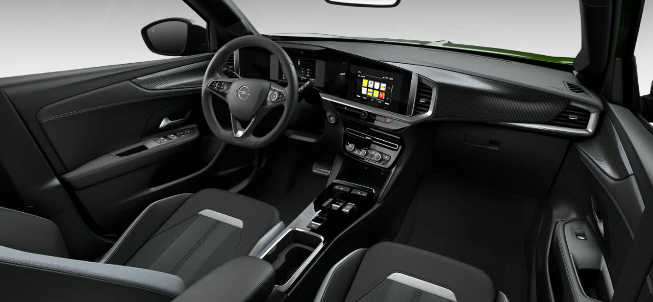 Wnętrze Opel Mokka GS zaprojektowano z myślą o komforcie i funkcjonalności. Przestronna kabina oferuje wysokiej jakości materiały, ergonomiczne fotele i nowoczesny system multimedialny z ekranem dotykowym, nawigacją oraz integracją smartfona przez Apple CarPlay i Android Auto. Cyfrowy kokpit Pure Panel zwiększa komfort i bezpieczeństwo jazdy.