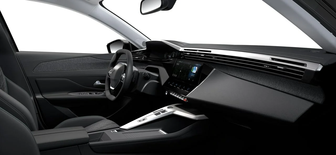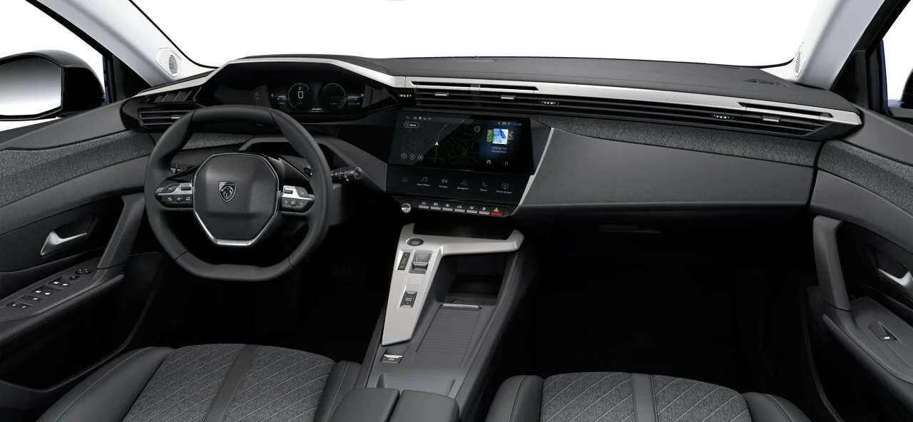 Wnętrze Peugeot 408 Allure zostało zaprojektowane z myślą o najwyższym komforcie i funkcjonalności. Przestronna kabina oferuje wysokiej jakości materiały, ergonomiczne fotele wykończone skórą i tkaniną oraz przemyślane rozwiązania, które zapewniają wygodę zarówno kierowcy, jak i pasażerom. Nowoczesny system multimedialny Peugeot i-Cockpit z dużym ekranem dotykowym, nawigacją oraz integracją smartfona poprzez Apple CarPlay i Android Auto zapewnia łatwy dostęp do wszystkich funkcji pojazdu. Cyfrowy kokpit oferuje intuicyjny dostęp do informacji o pojeździe, zwiększając komfort i bezpieczeństwo jazdy.