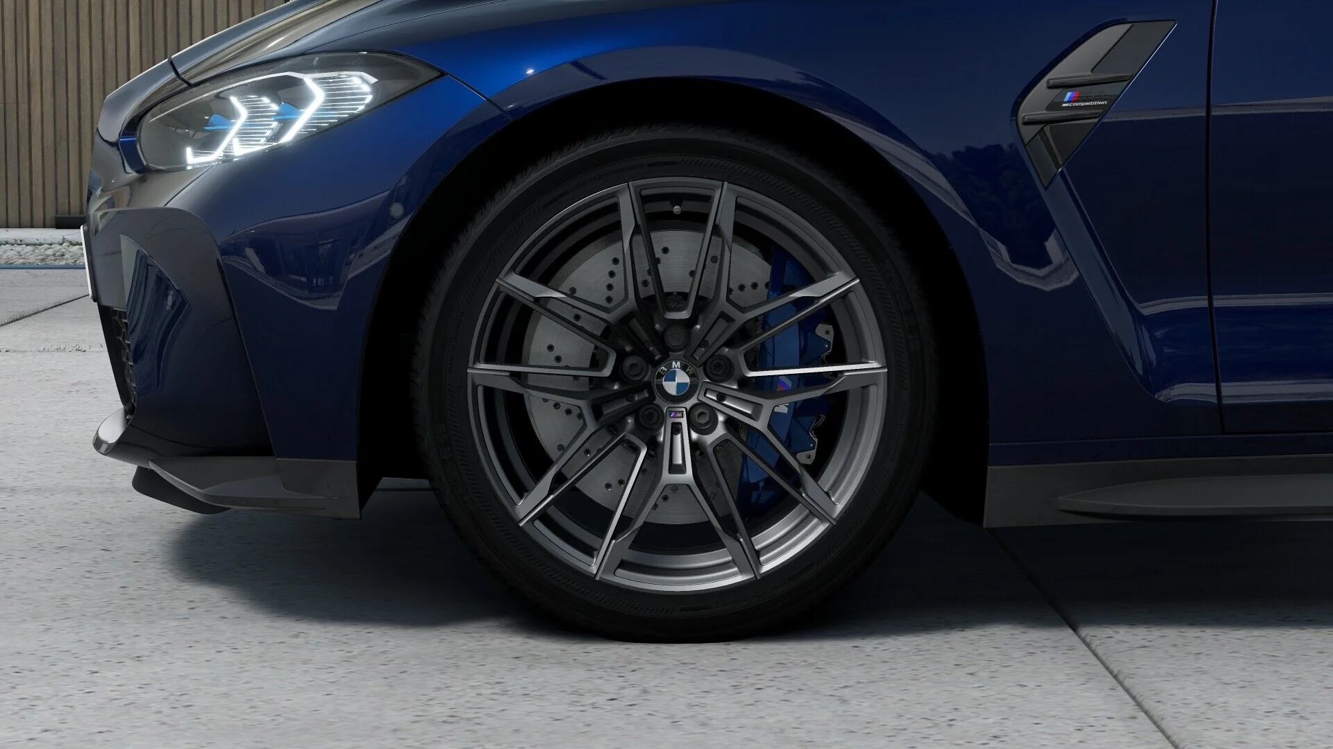 Zewnętrzny wygląd BMW M4 Competition Coupé wyróżnia się agresywnymi i muskularnymi liniami, które podkreślają jego sportowy charakter. Charakterystyczny, szeroki grill M, dynamicznie zarysowane nadkola, aerodynamiczne zderzaki oraz szerokie, 19-calowe felgi z przodu i 20-calowe z tyłu, nadają mu potężny i dynamiczny wygląd. Stylowe detale, takie jak wyraziste akcenty w kolorze czarnym Shadow Line, podwójne końcówki wydechu M oraz karbonowy dach, podkreślają wyścigowy rodowód tego modelu, tworząc pojazd, który przyciąga wzrok zarówno na drodze, jak i na torze.