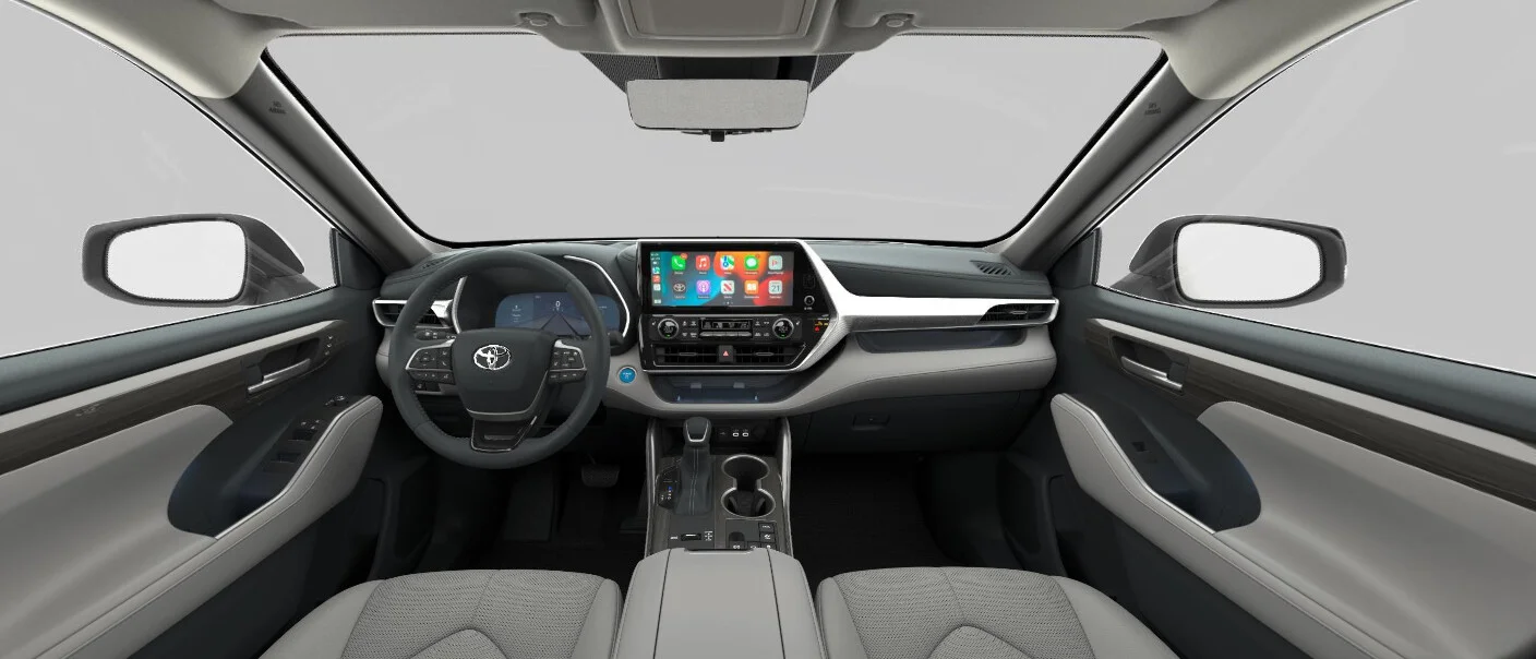 Wnętrze Toyoty Highlander Executive zostało zaprojektowane z myślą o najwyższym komforcie i funkcjonalności. Przestronna kabina oferuje najwyższej jakości materiały, takie jak skóra i drewno, oraz ergonomiczne fotele z funkcją regulacji elektrycznej, podgrzewaniem i wentylacją, które zapewniają luksusowy komfort zarówno kierowcy, jak i pasażerom. Nowoczesny system multimedialny Toyota Touch 2 z dużym ekranem dotykowym, nawigacją oraz integracją smartfona poprzez Apple CarPlay i Android Auto, umożliwia łatwy dostęp do wszystkich funkcji pojazdu. Cyfrowy kokpit z wyświetlaczem Head-Up Display oferuje personalizowane ustawienia, które zwiększają komfort i bezpieczeństwo jazdy.