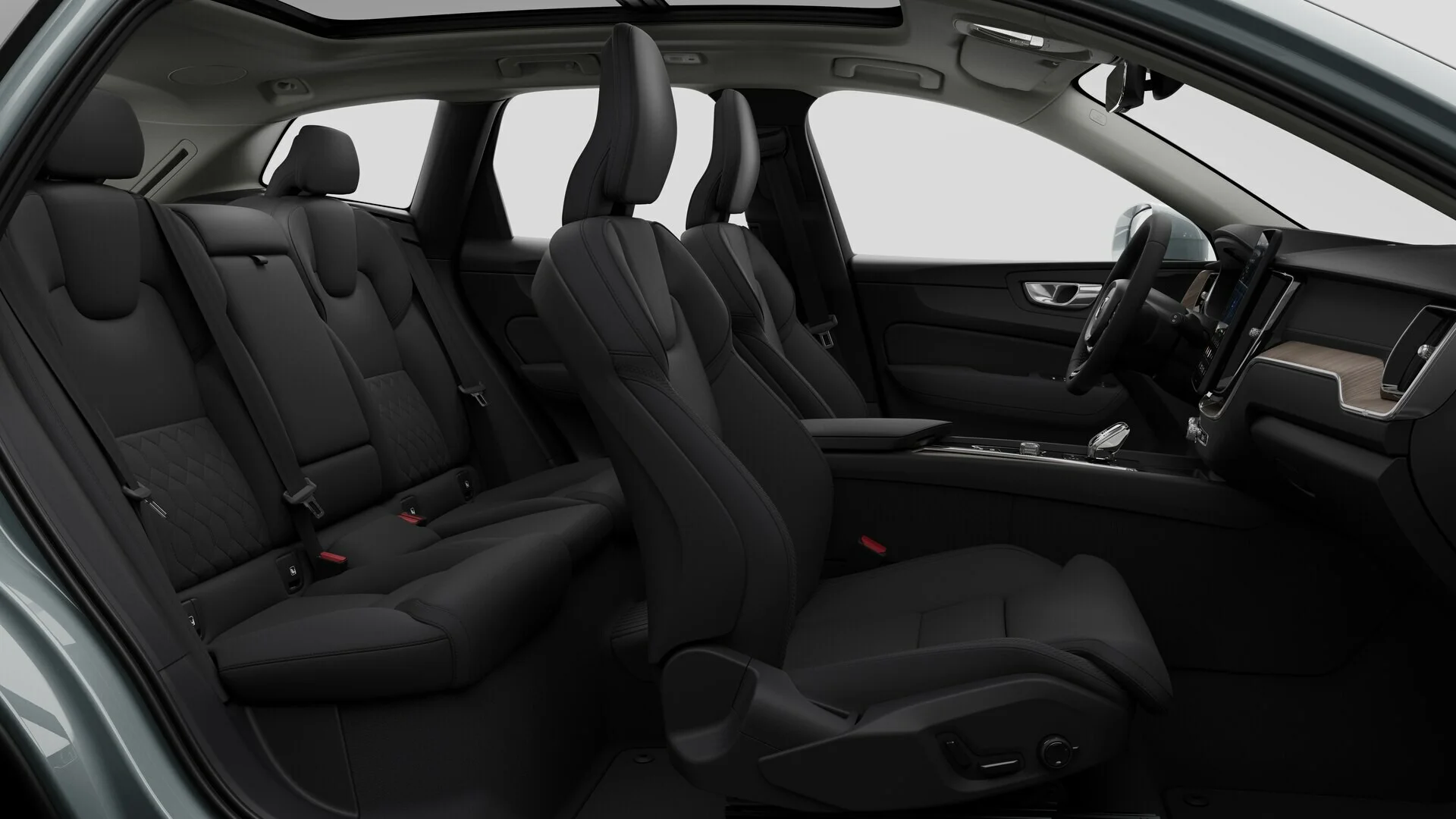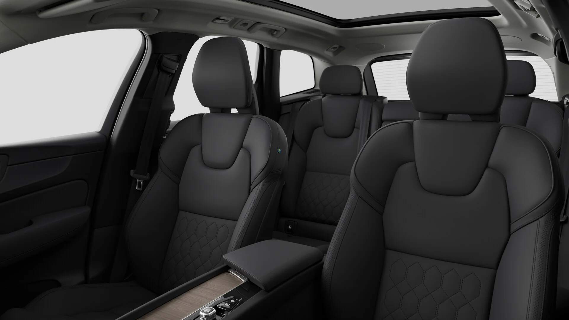 Wnętrze Volvo XC60 Ultra T6 eAWD Plug-in Hybrid zostało zaprojektowane z myślą o maksymalnym komforcie i nowoczesności. Przestronna kabina oferuje najwyższej jakości materiały, takie jak skóra Nappa, drewniane wykończenia oraz ergonomiczne fotele z funkcją regulacji elektrycznej, podgrzewaniem i wentylacją, które zapewniają luksusowy komfort zarówno kierowcy, jak i pasażerom. Nowoczesny system multimedialny Sensus z dużym ekranem dotykowym, nawigacją oraz integracją smartfona poprzez Apple CarPlay i Android Auto, zapewnia pełną kontrolę nad funkcjami pojazdu. Cyfrowy kokpit z personalizowanym wyświetlaczem oferuje intuicyjny dostęp do informacji o pojeździe, co zwiększa komfort i bezpieczeństwo jazdy.