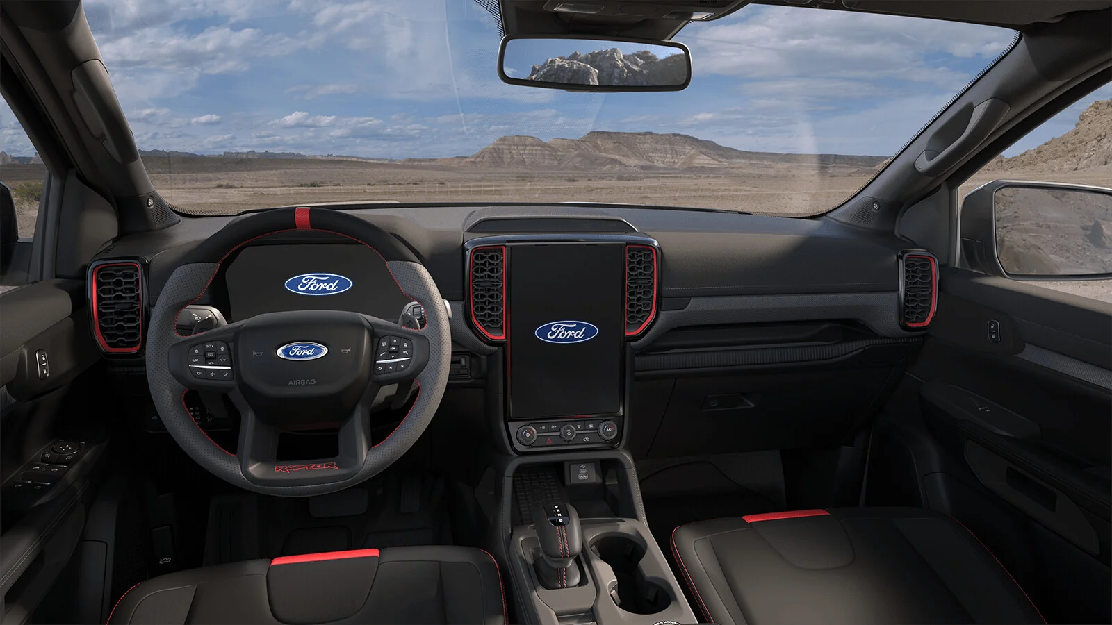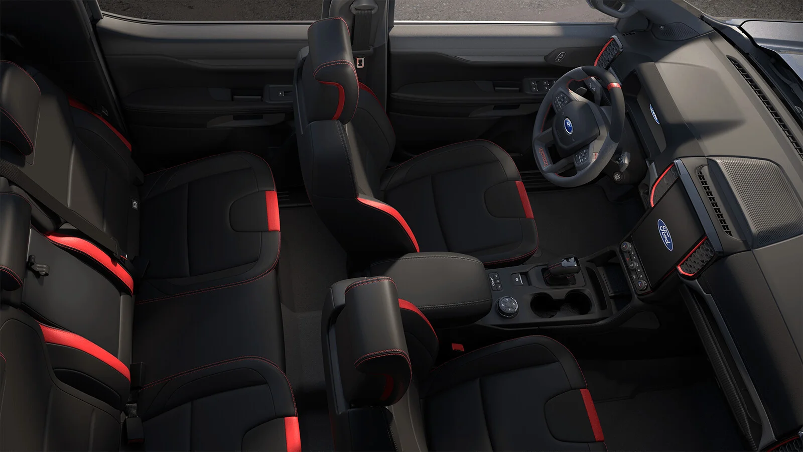 Wnętrze Nowego Rangera zostało zaprojektowane z myślą o komforcie i funkcjonalności. Kabina oferuje wytrzymałe materiały oraz ergonomiczne fotele, które zapewniają wygodę podczas długich podróży i pracy w terenie. Nowoczesny system multimedialny SYNC 3 z ekranem dotykowym, nawigacją oraz integracją smartfona poprzez Apple CarPlay i Android Auto, umożliwia pełną kontrolę nad funkcjami pojazdu, zapewniając dostęp do multimediów i nawigacji na każdym etapie podróży. Duża przestrzeń ładunkowa oraz liczne schowki we wnętrzu czynią Rangera niezwykle praktycznym narzędziem pracy i komfortowym autem do codziennego użytkowania.