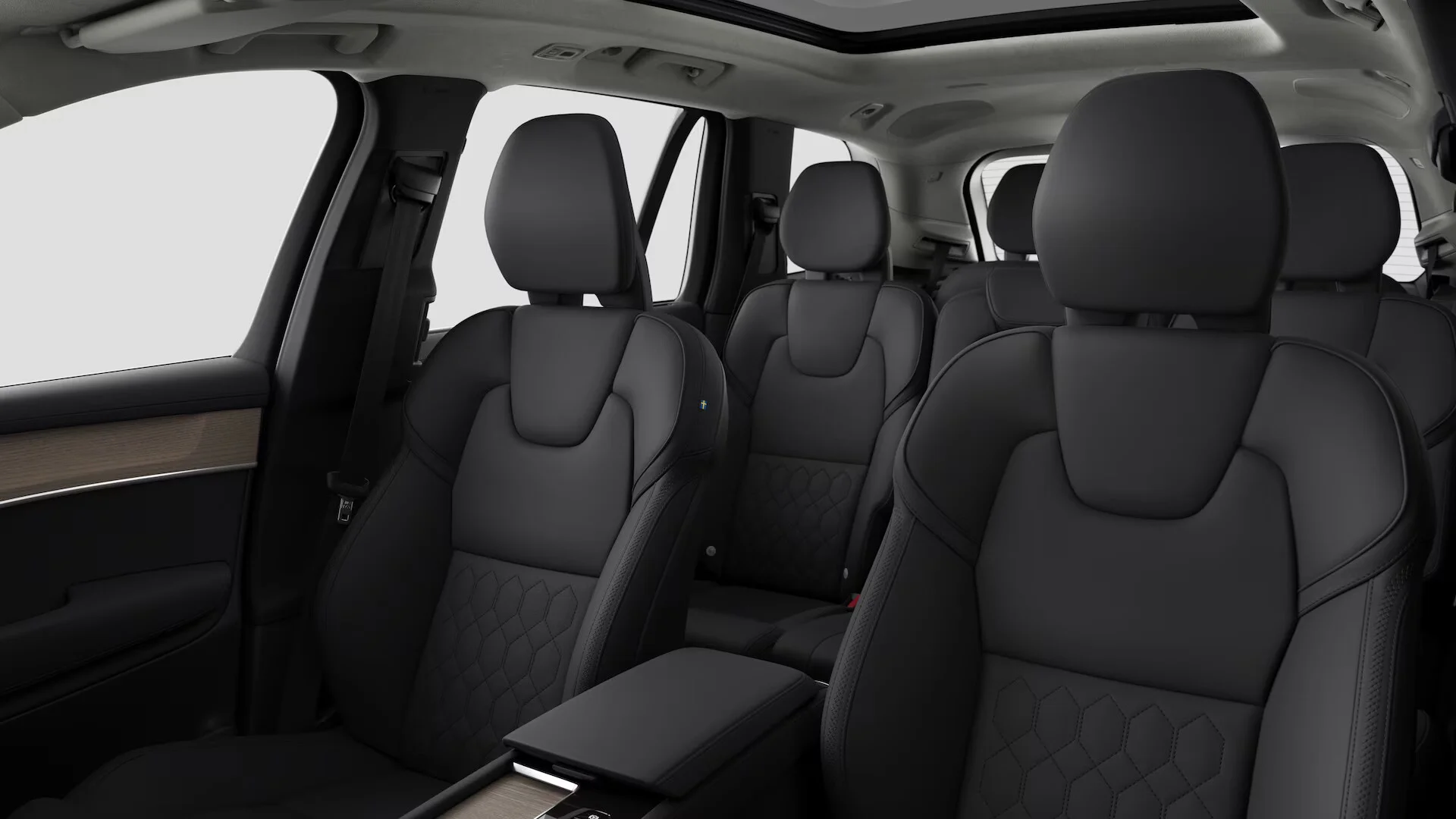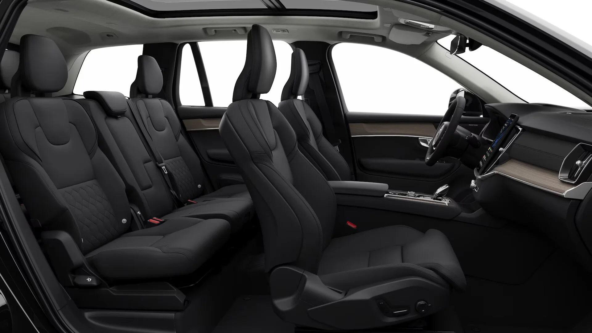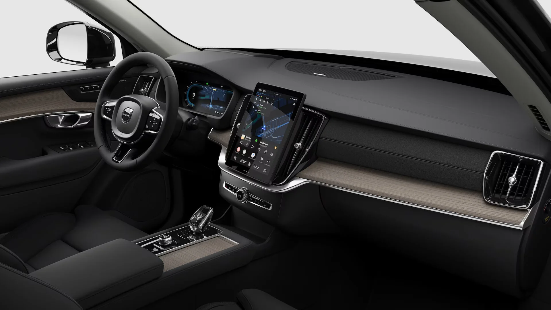 Wnętrze Volvo XC90 Ultra B5 oferuje najwyższy poziom komfortu i wyrafinowania. Przestronna kabina, wykończona najwyższej jakości materiałami, takimi jak skóra Nappa i drewniane elementy, zapewnia wygodę zarówno kierowcy, jak i pasażerom. Fotele z regulacją elektryczną, podgrzewaniem i wentylacją oferują niezrównany komfort na dłuższe trasy. Nowoczesny system multimedialny Sensus z dużym ekranem dotykowym, nawigacją oraz integracją smartfona poprzez Apple CarPlay i Android Auto, zapewnia pełną kontrolę nad funkcjami pojazdu. Cyfrowy kokpit oferuje personalizowane ustawienia, które dodatkowo zwiększają wygodę i bezpieczeństwo jazdy.